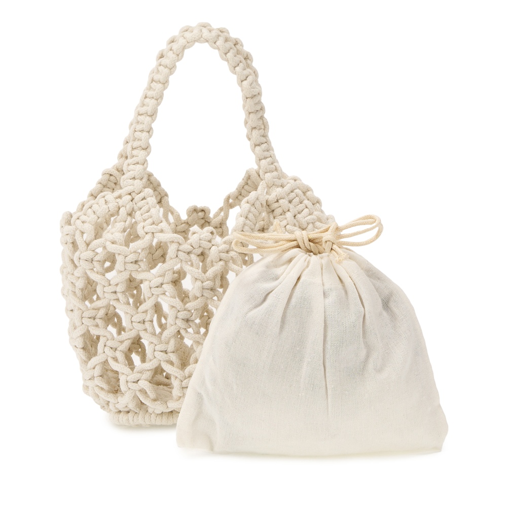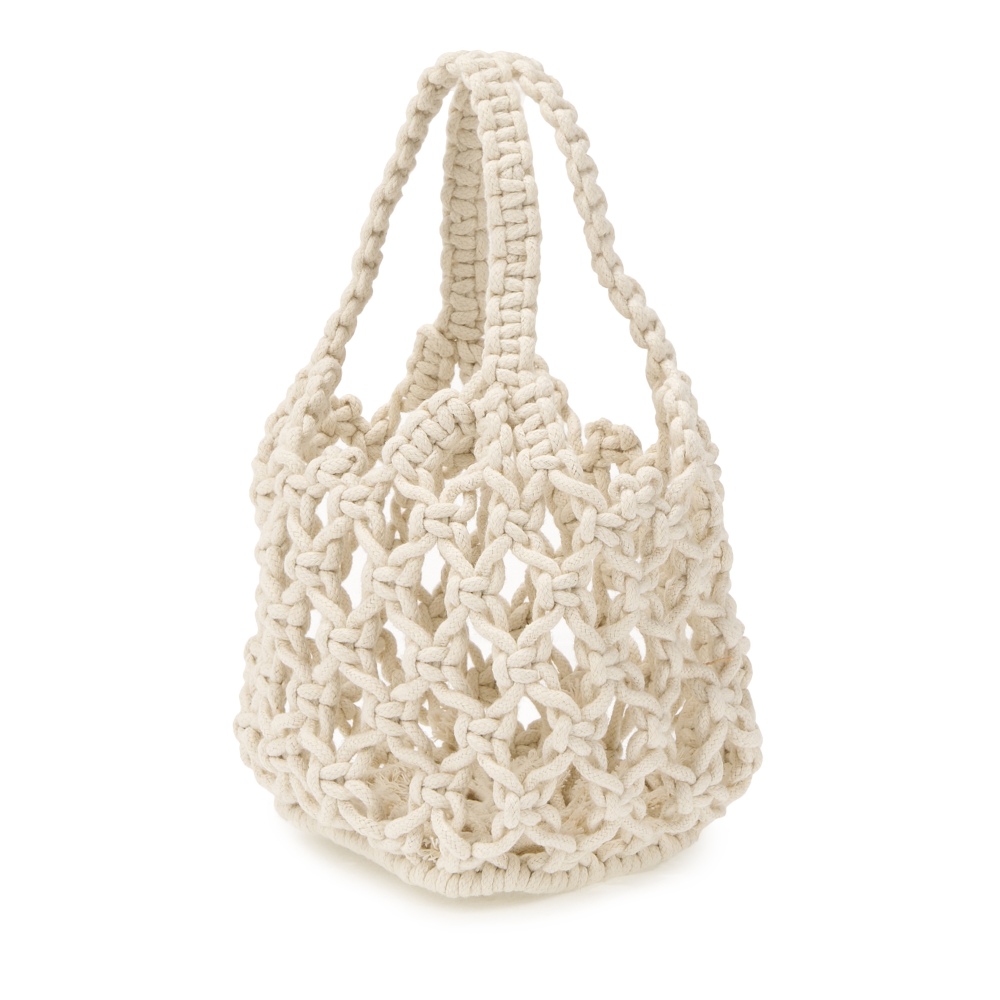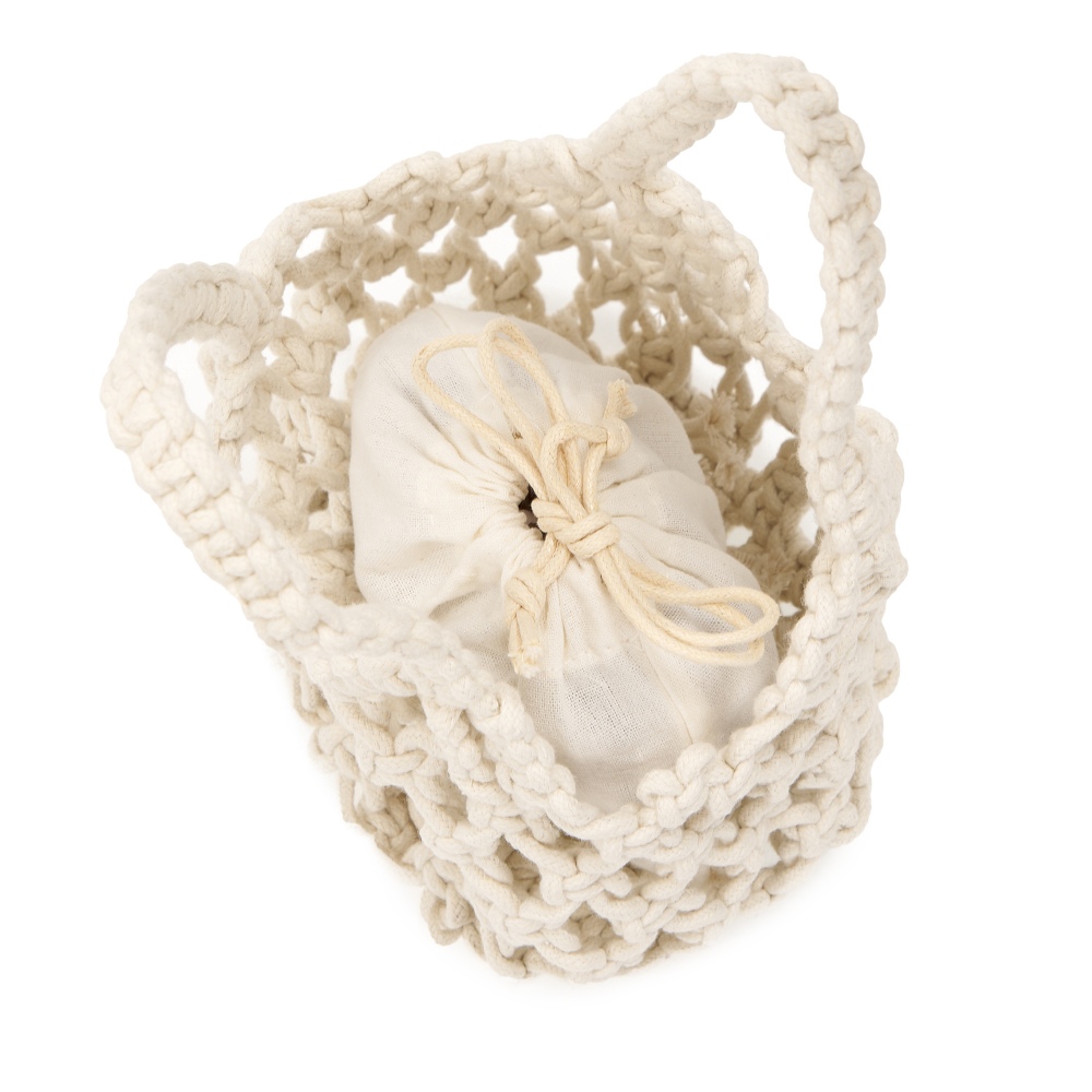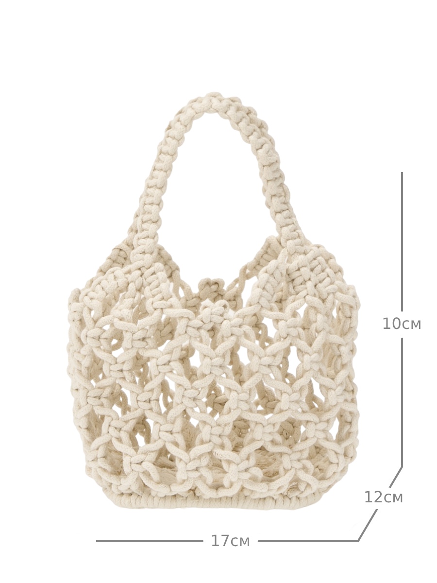 Миниатюрная женская сумка-авоська выполнена из декоративно переплетенных хлопковых нитей. Габариты плетеной сумочки – (ШхВхГ) 17х10х12 см. Плетеная сумка мини имеет одно отделение, внутрь которого помещается съемный текстильный мешочек-кисет, затягивающийся шнурком. Плотная вязка по дну позволяет сумочке с двумя ручками сохранять форму и устойчивость.