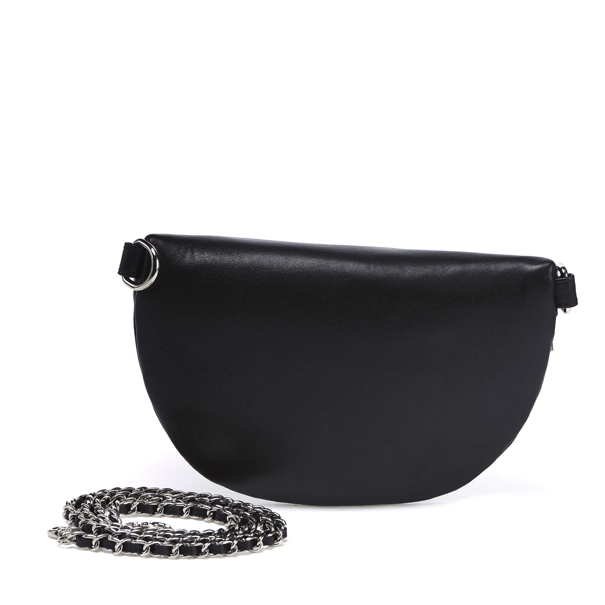 Сумка изготовлена из гладкой натуральной кожи. Основное отделение на молнии внутри есть закрытый карман и один открытый. К сумке прилается широкий ремень и цепочка, которая позволяет носить сумку как поясную так и через плечо.