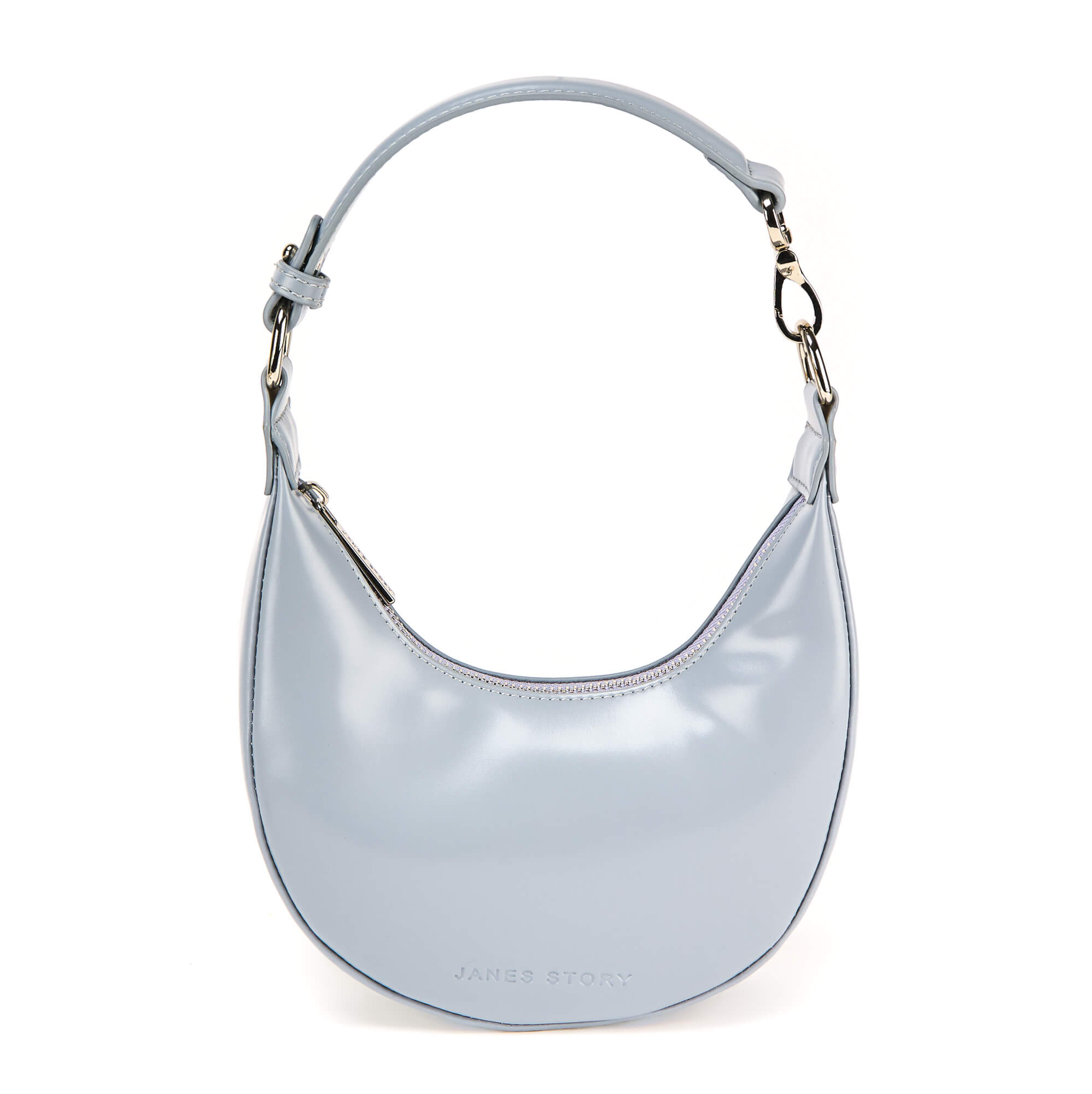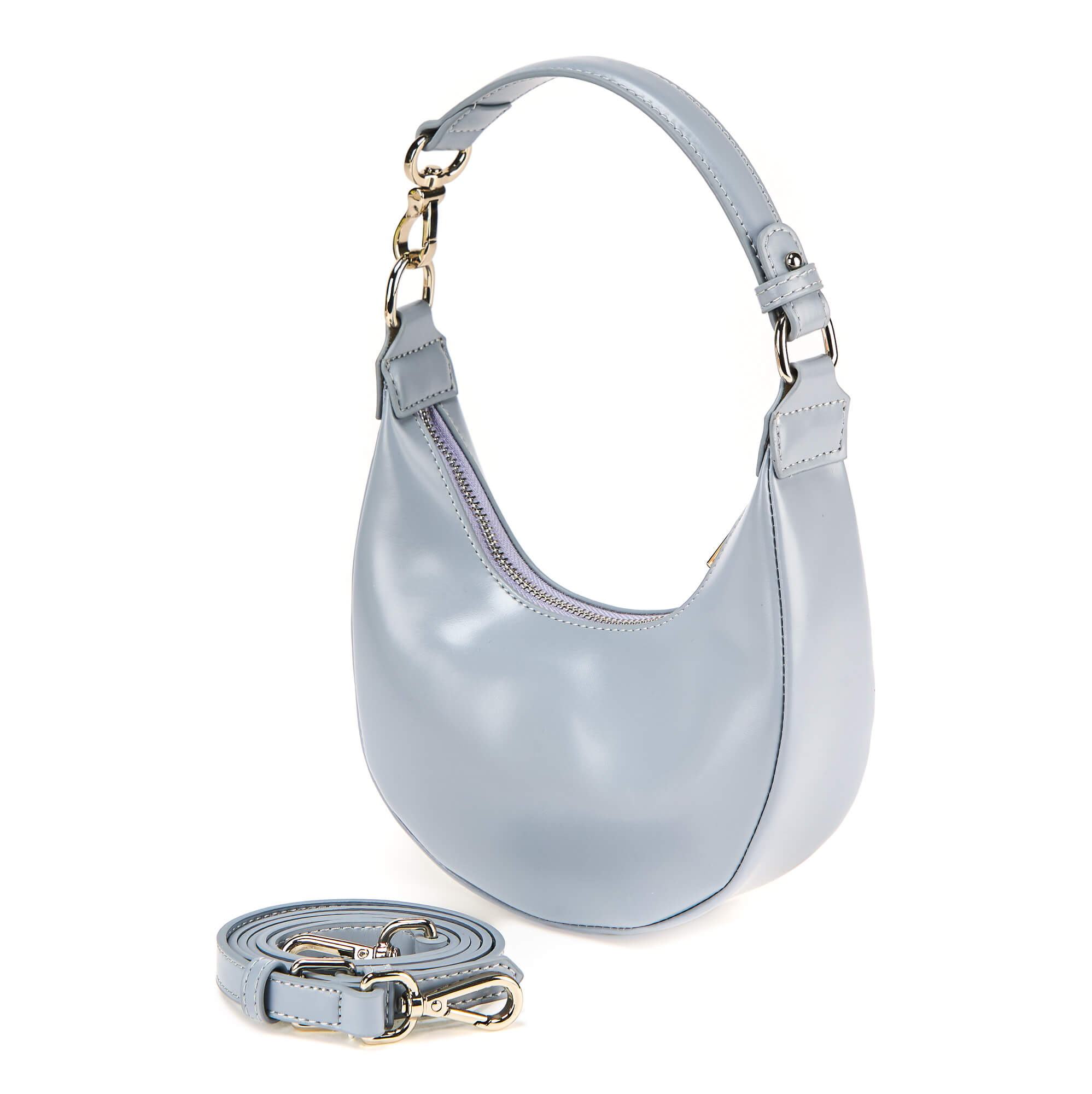 Миниатюрная сумка кросс-боди необычной формы из натуральной гладкой кожи. Основное отделение на молнии, внутри есть небольшой открытый карман. К сумке прилагается длинный плечевой ремень.
