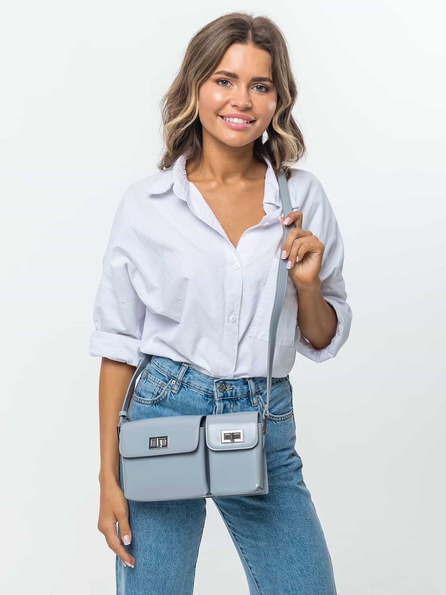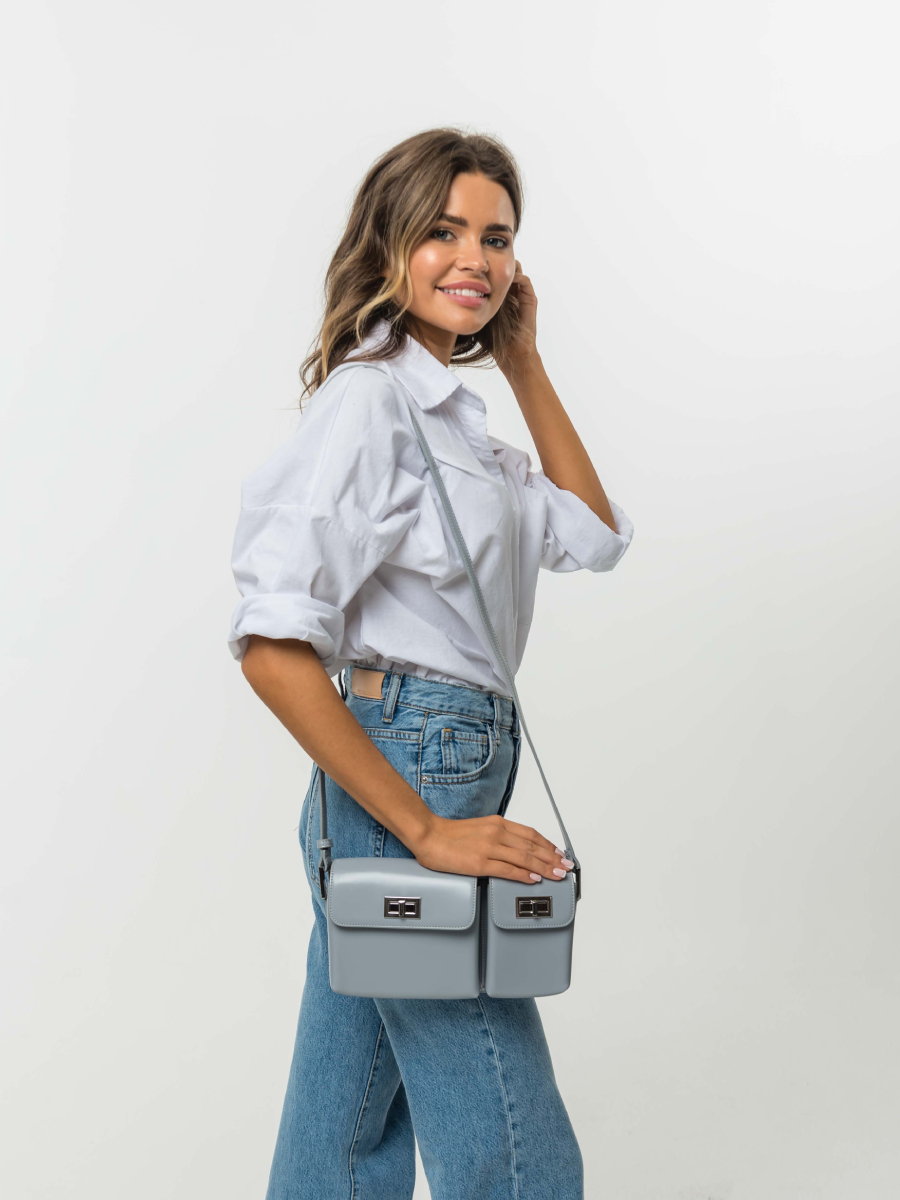Необычная сумка кросс-боди из натуральной гладкой кожи. Два отделения, которые закрываются замком на клапане. Сумка хорошо держит форму.