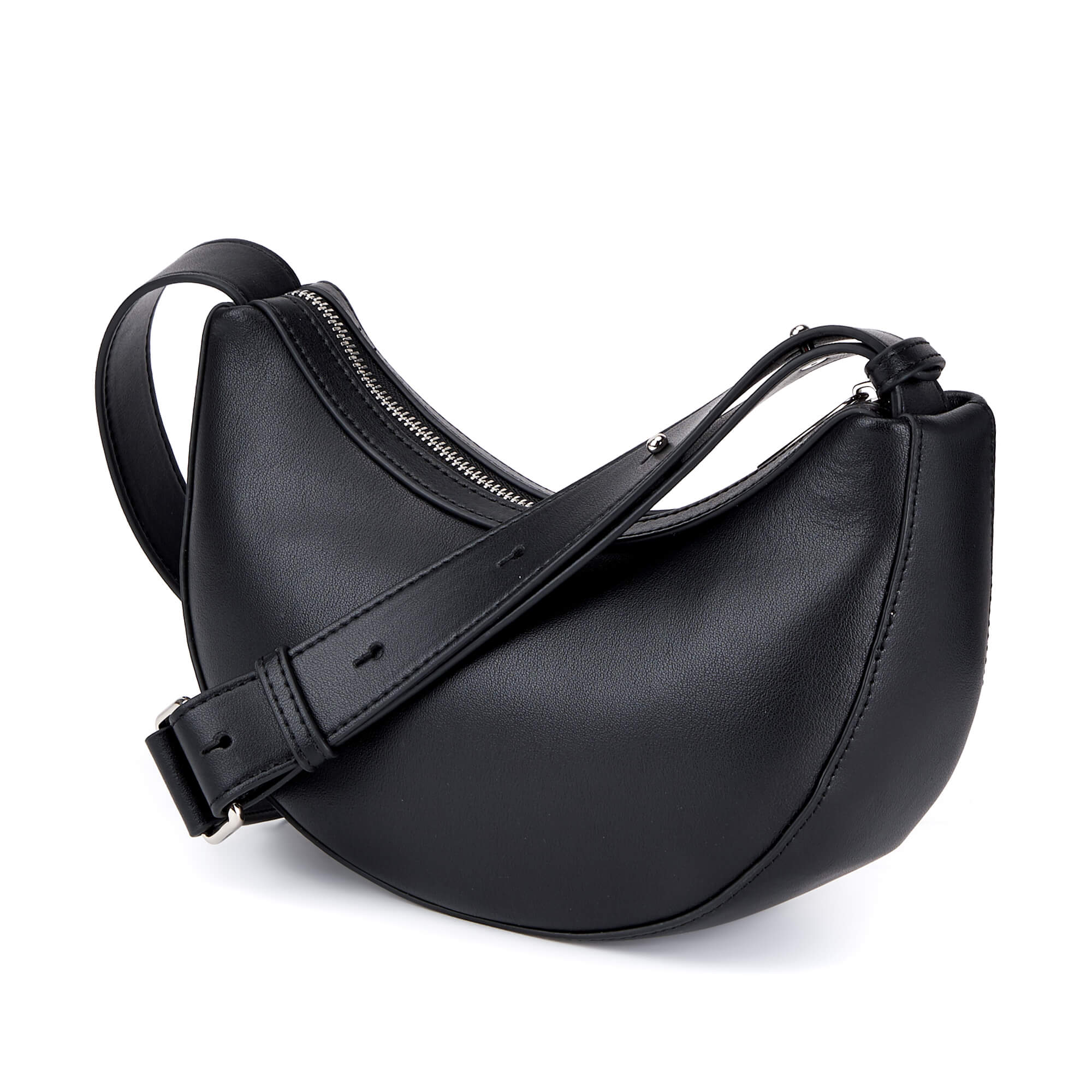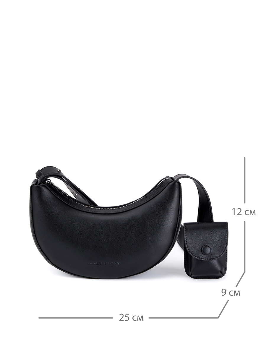 Женская формованная сумка из натуральной кожи с гладкой фактурой. Фурнитура выполнена в серебристом цвете. Основное отделение на подкладе с фирменным паттерном закрывается на молнию. Внутри один открытый карман и карман на молнии. Широкий несъемный плечевой ремень регулируется по длине до 115 см. Сумка поставляется в текстильной и полиэтиленовой упаковке.
