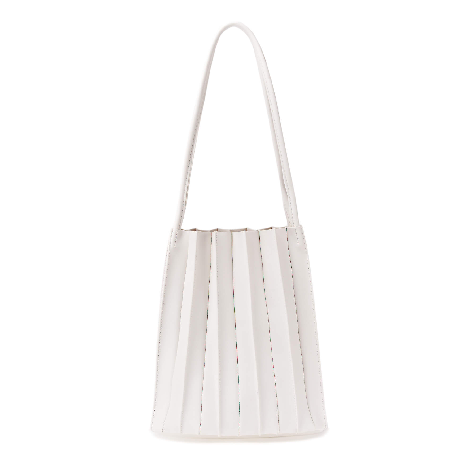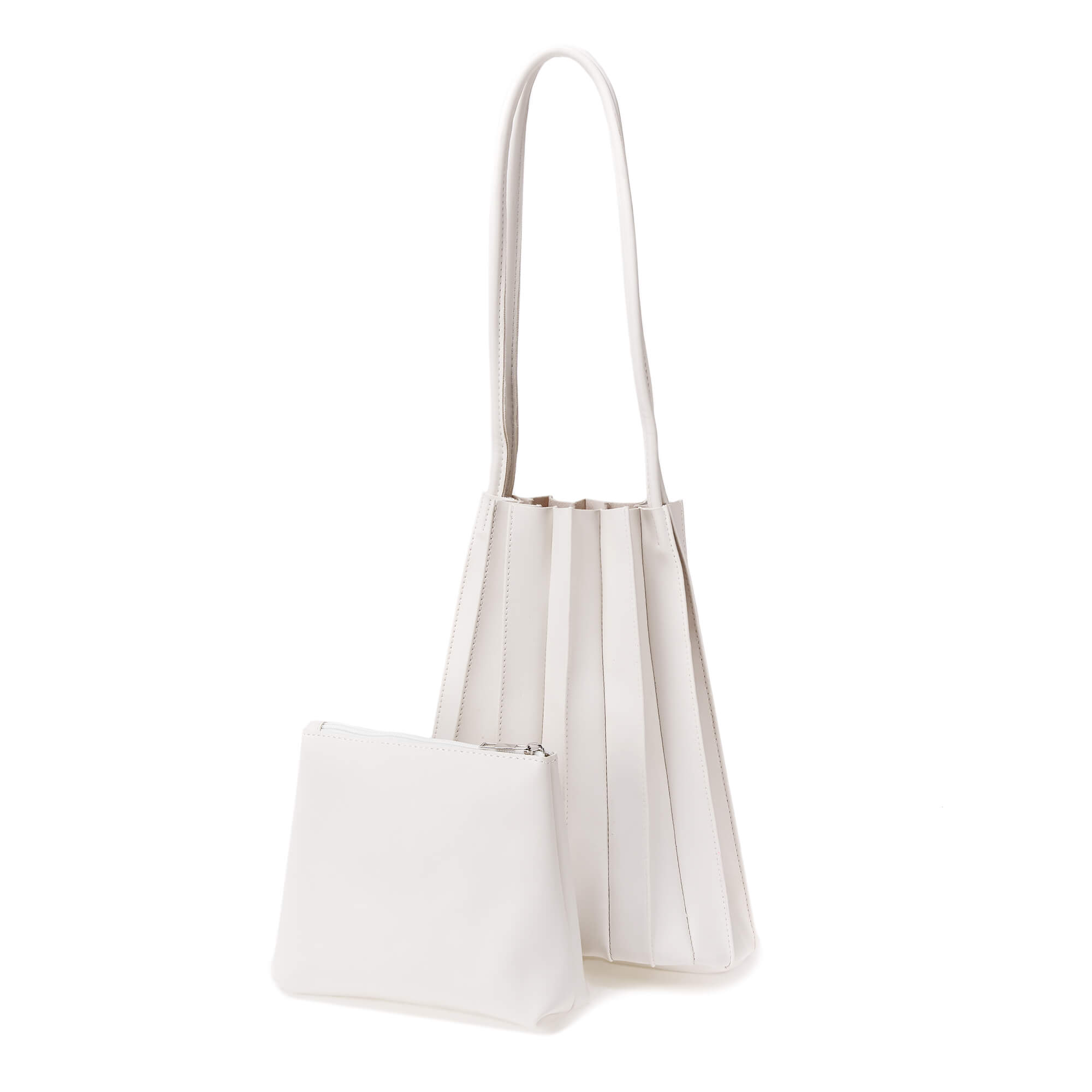 Сумка-мешок из гладкой искусственной кожи с плиссировкой. Внутри отделение-косметичка на молнии.