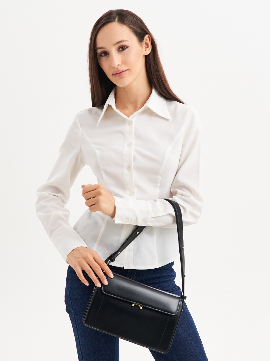 Оригинальная женская сумка сэтчел из гладкой натуральной кожи на длинном ремне непременно должна быть в гардеробе каждой женщины! Модель универсальная, подойдет на каждый день и на вечерний выход. Габариты кроссбоди - ( ВхШхГ) 17х26х8 см. Под клапаном на замке 2 отделения. Внутри 1 открытый карман и 1 карман на молнии. Подклад выполнен из плотного полиэстера. Несъемный плечевой ремень регулируется по длине до 105 см. Фурнитура выполнена из металла под светлое золото. Сумка с застежкой поставляется в текстильной (пыльник) и полиэтиленовой упаковке, что защищает ее от повреждений, а также позволяет удобно хранить женскую сумочку в дальнейшем использовании.