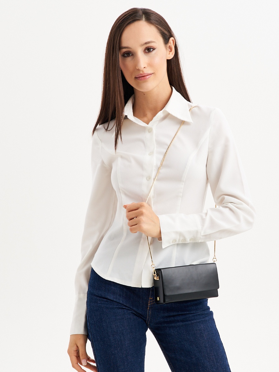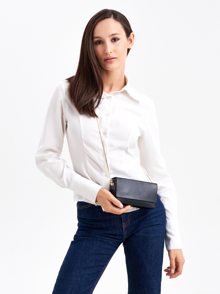 Миниатюрная женская сумка сэтчел выполнена из гладкой натуральной кожи. Габариты сумки через плечо -( ВхШхГ) 10х17х5 см. Сумка багет с подкладом в жестком каркасе. Под клапаном на магните 1 отделение выполнено без подклада. Сумка кроссбоди легкая и вместительная, чтобы самые нужные вещи всегда были под рукой. В комплекте цепочка 110см. Фурнитура выполнена из металла золотистого цвета. Сумка клатч поставляется в текстильной (пыльник) и полиэтиленовой упаковке, что защищает ее от повреждений, а также позволяет удобно хранить женскую сумочку в дальнейшем использовании.