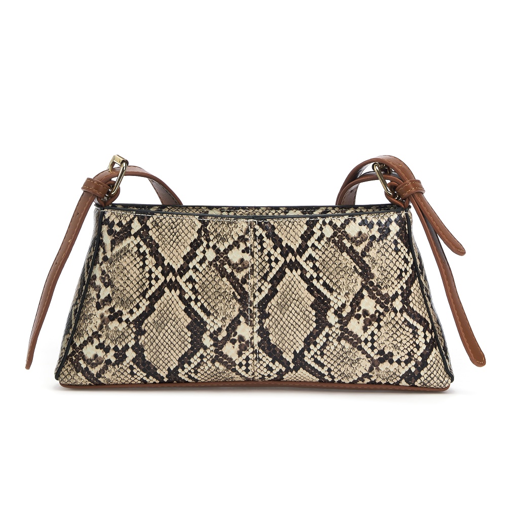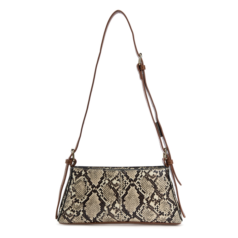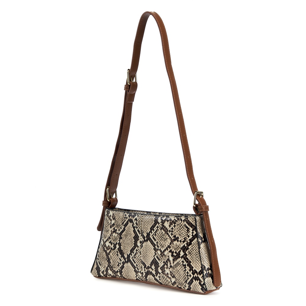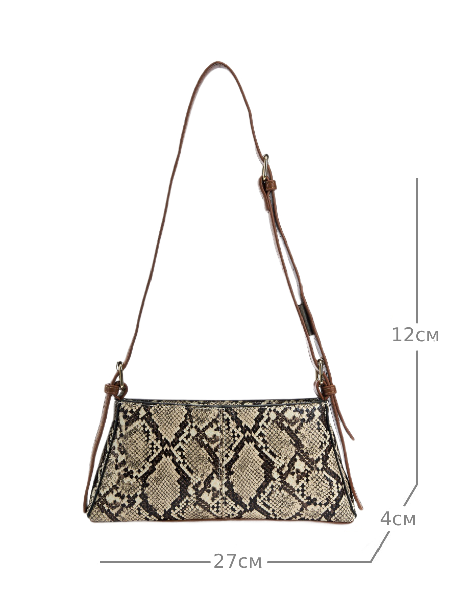 Женская маленькая сумка багет выполнена из искусственной кожи с приятной текстурой. Габариты сумочки - (ВхШхГ) 12х27х4 см. Основное отделение на подкладе из плотного полиэстера закрывается на надежную молнию. Внутри один кармашек на молнии. В комплекте съемный плечевой ремень, регулируется до 115 см. позволит носить сумку на плечо и через плечо как кроссбоди. Фурнитура выполнена из металла в золотистом цвете. Сумка с ручкой поставляется в текстильной (пыльник) и полиэтиленовой упаковке, что защищает ее от повреждений, а также позволяет удобно хранить женскую сумочку в дальнейшем использовании.