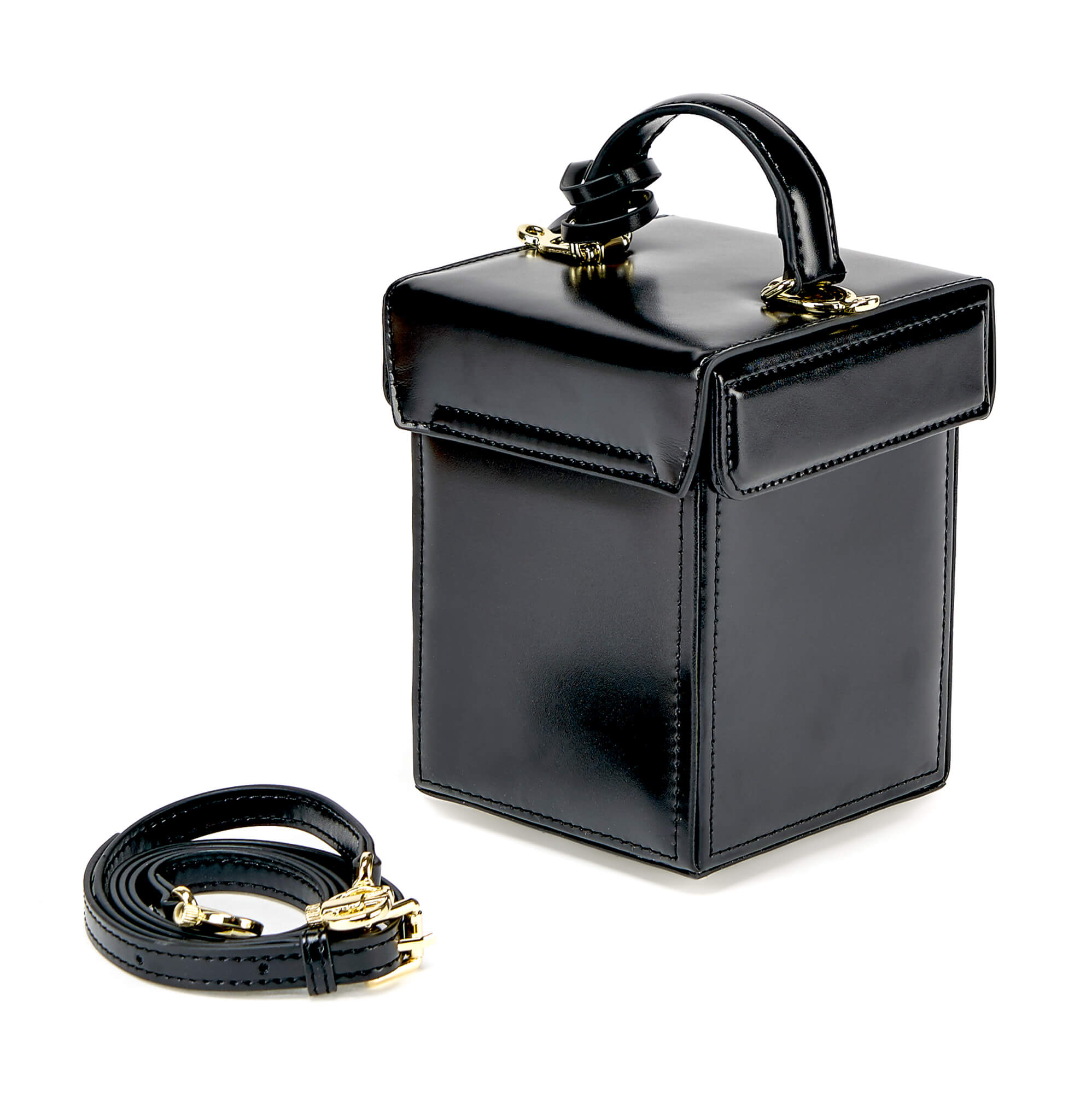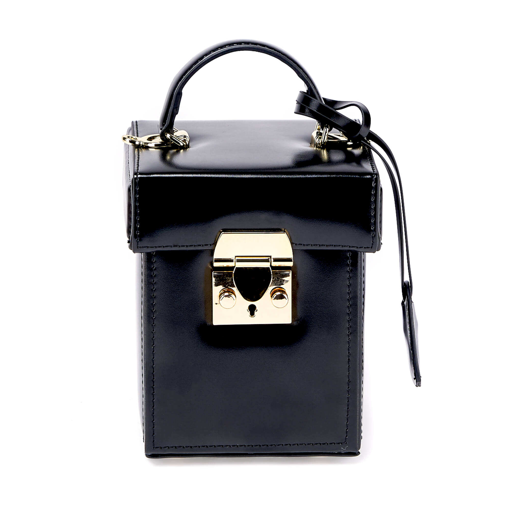 Миниатюрная сумка необычной формы из гладкой натуральной кожи. Основное отделение на замке, внутри один открытый карман. К сумке прилагается длинный плечевой ремень.