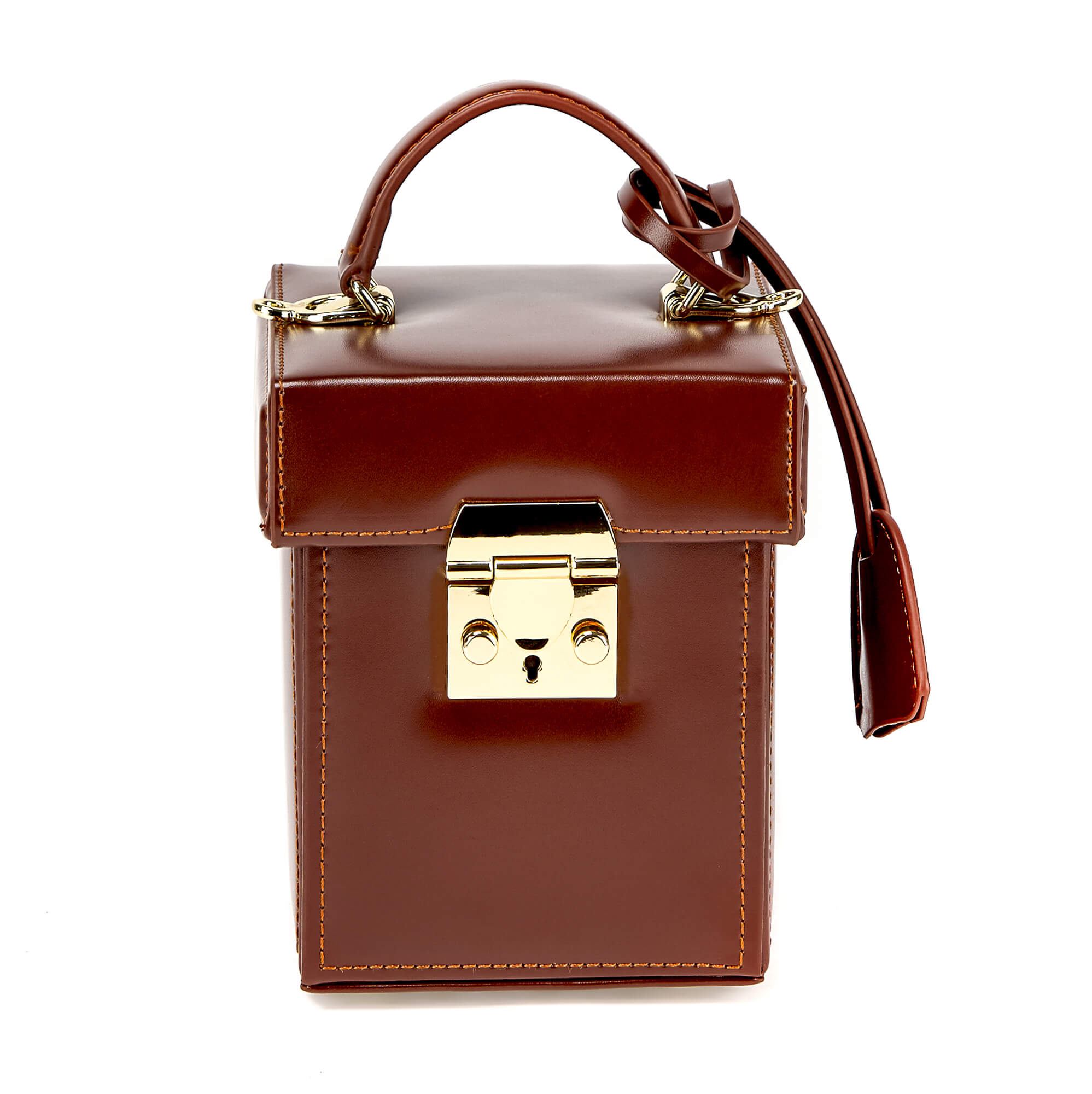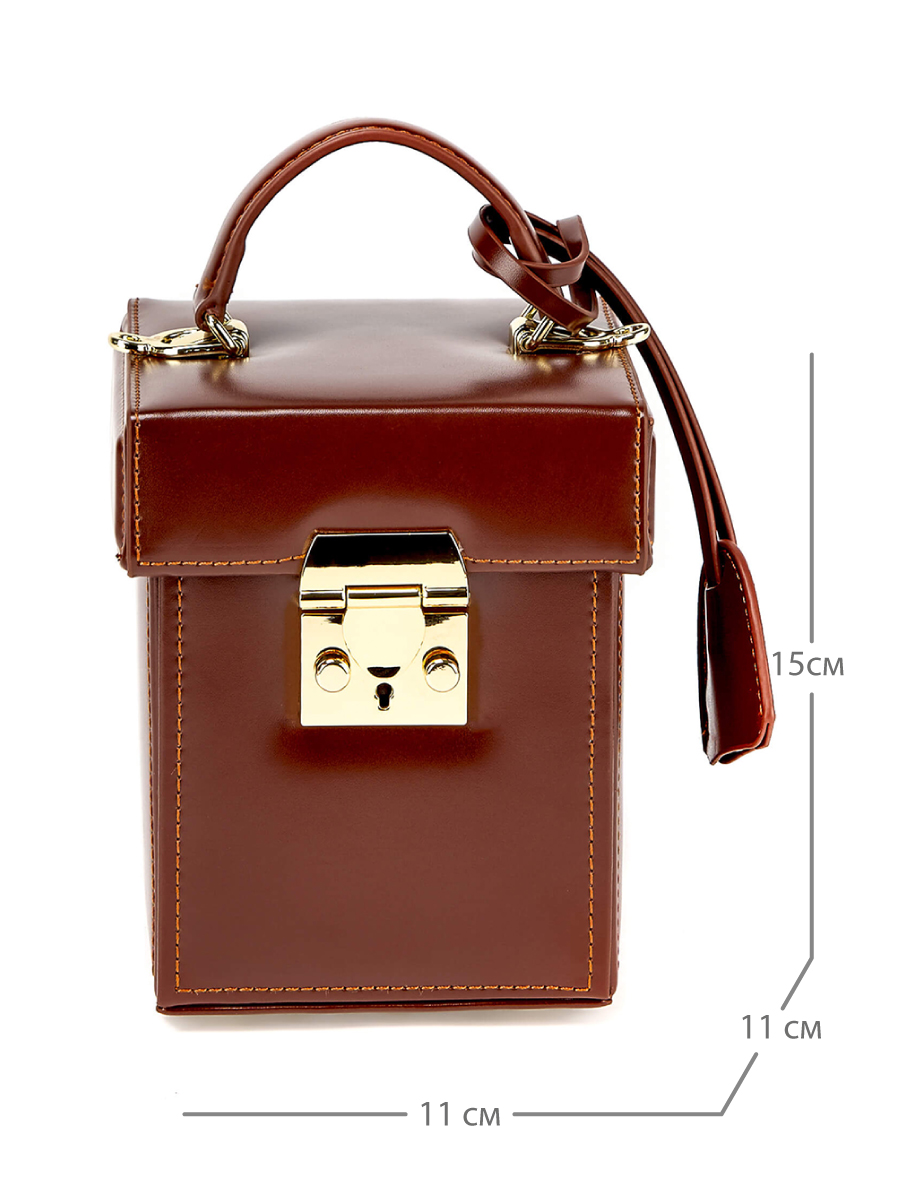 Миниатюрная сумка необычной формы из гладкой натуральной кожи. Основное отделение на замке, внутри один открытый карман. К сумке прилагается длинный плечевой ремень.