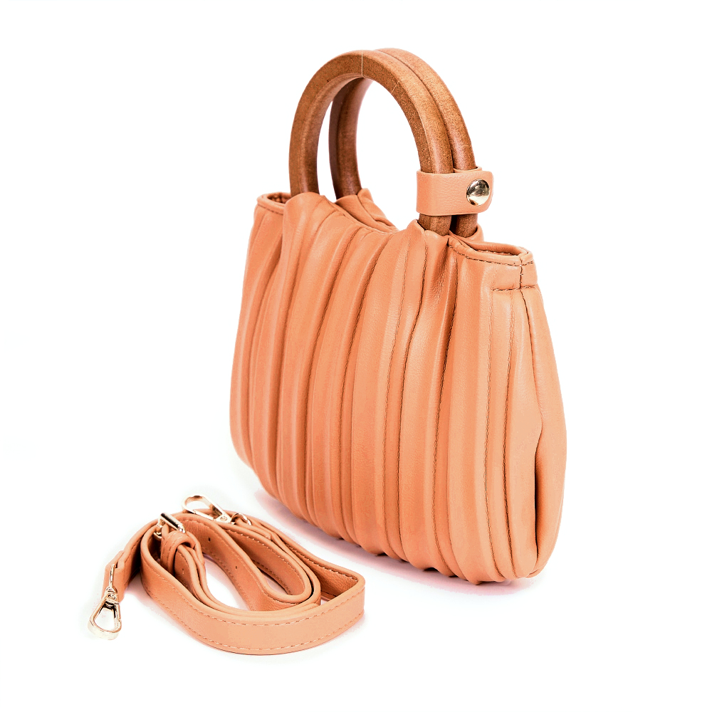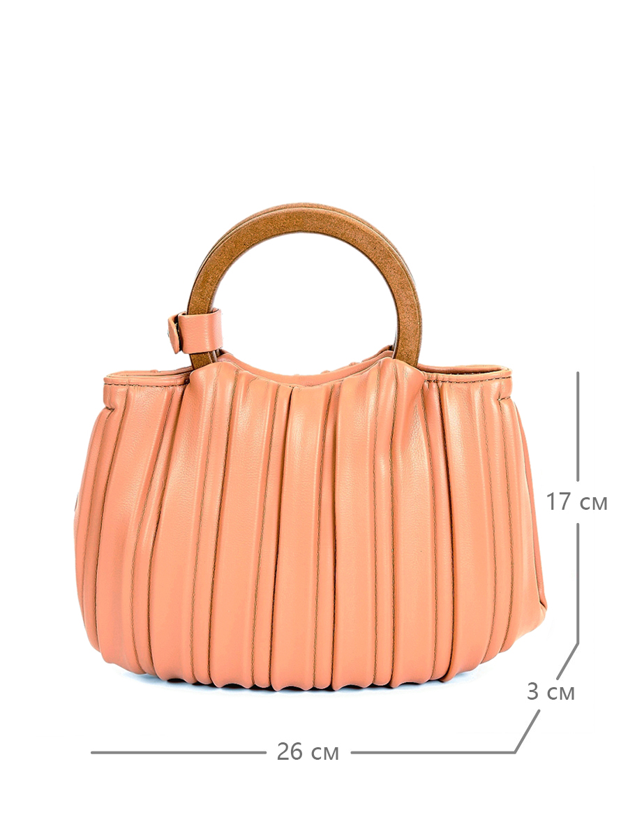 Женская сумка из искусственной кожи с деревянными ручками на магните и с золотистой фурнитурой. Модель выполнена с подкладом, внутри - карман на молнии. К сумке прилагается плечевой ремень, регулируемый до 112 см. Сумка поставляется в текстильной и полиэтиленовой упаковке.