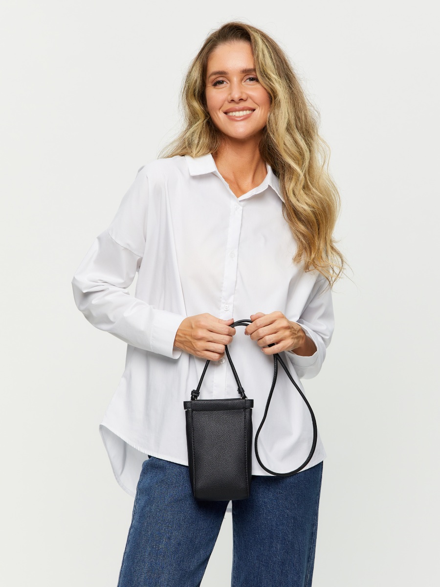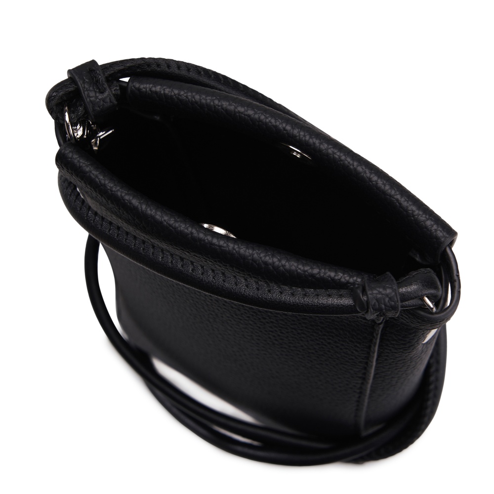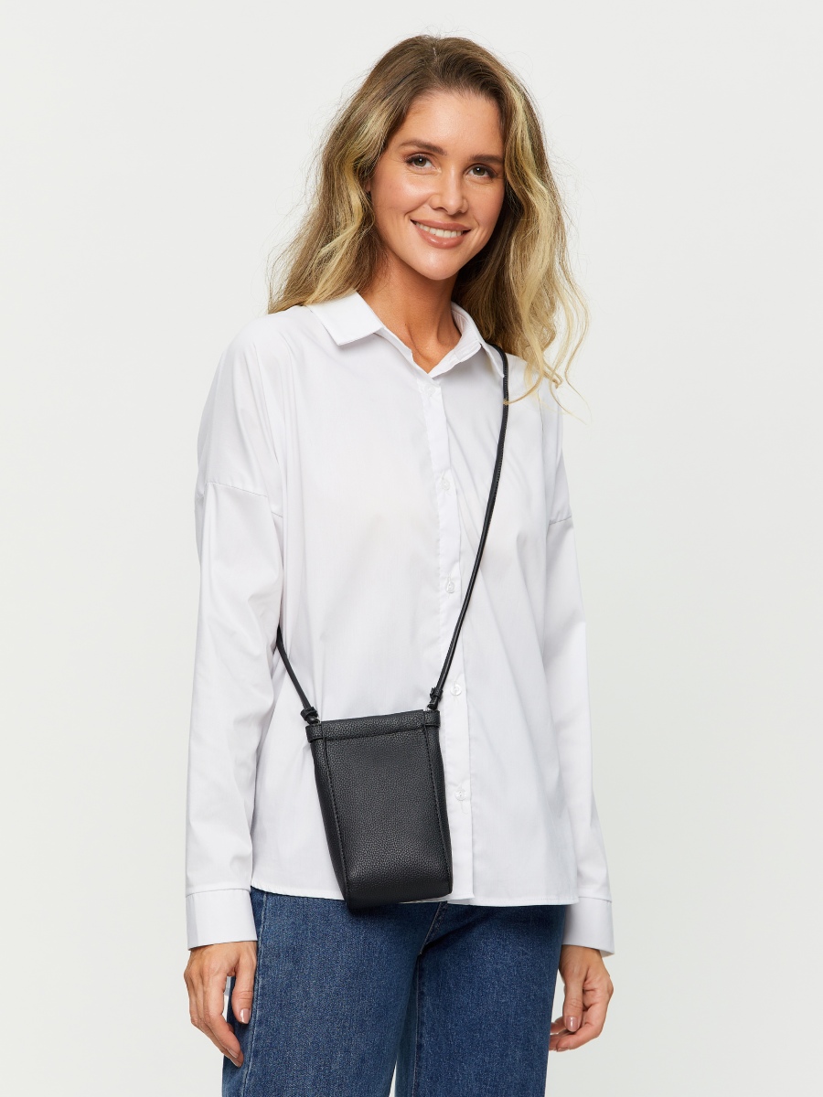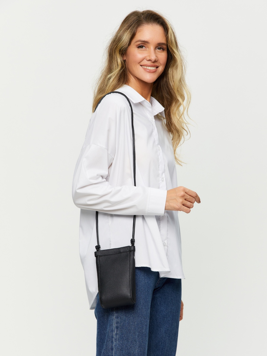 Миниатюрная женская сумка из зернистой искусственной кожи на длинном шнурке. Основное отделение закрывается на магнит. Сумка поставляется в текстильной и полиэтиленовой упаковке.