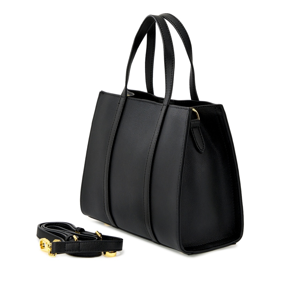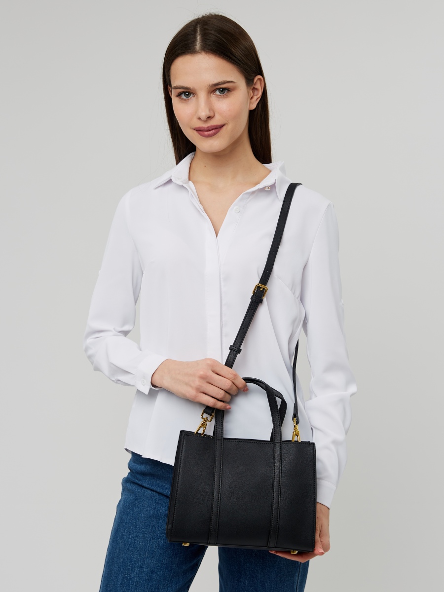 Женская сумка-тоут выполнена из качественной натуральной кожи, которая имеет невероятно мягкую и приятную на ощупь фактуру. Сумочка средняя, габариты (ШхВхГ) 28х21х11 см. Внутри находится основное отделение на текстильном подкладе, которое закрывается на прочную молнию. Внутри есть 2 открытых кармана и 2 кармана на молнии. Дополнительные боковые отделения закрываются на магнитные кнопки. Съемный плечевой ремень регулируется по длине до 115 см., поэтому сумку удобно носить на руке, на плечо и через плечо как кросс-боди. Уплотненное дно и металлические ножки обеспечивают устойчивость и защиту изделия от повреждений. Фурнитура сумки с двумя ручками выполнена в золотистом цвете.
