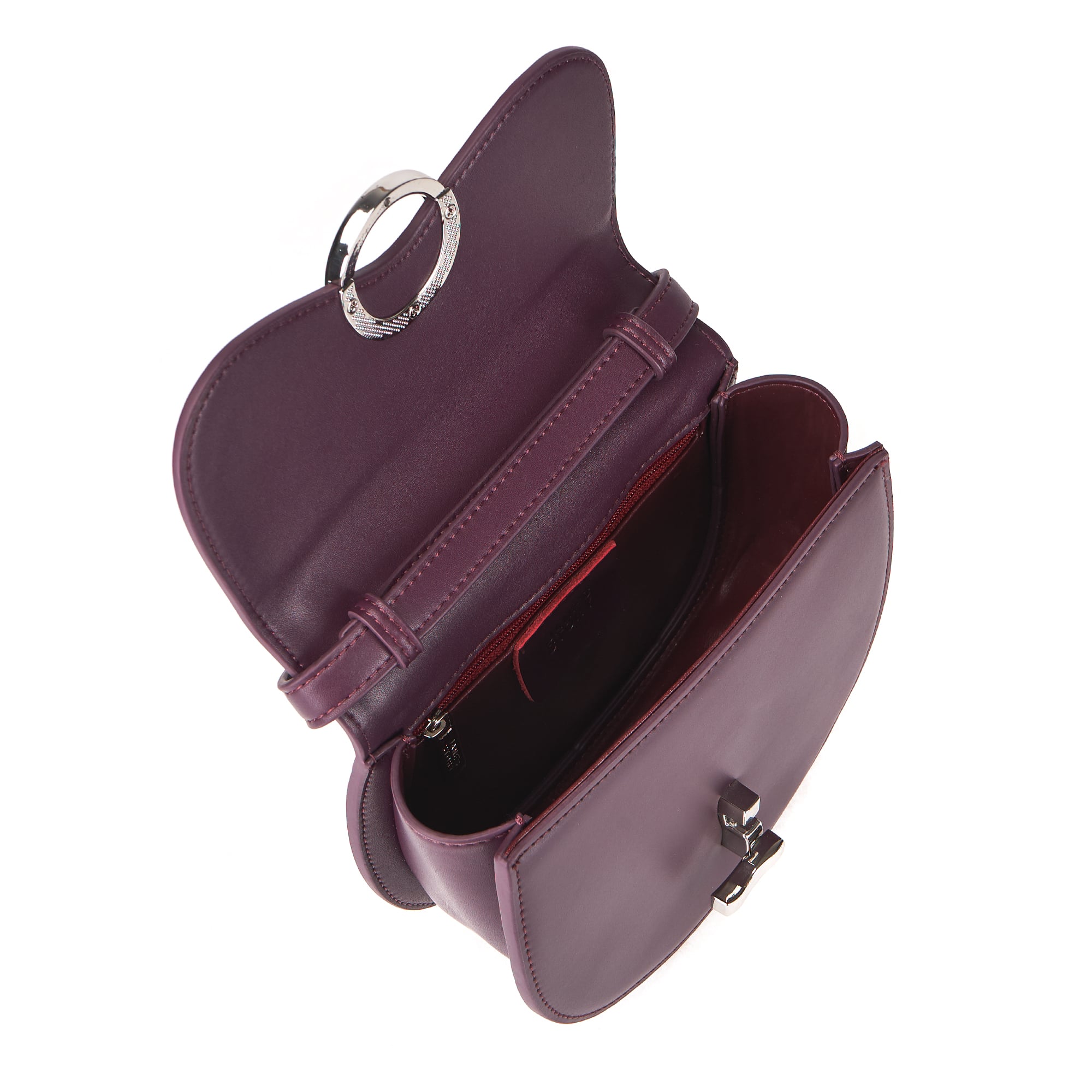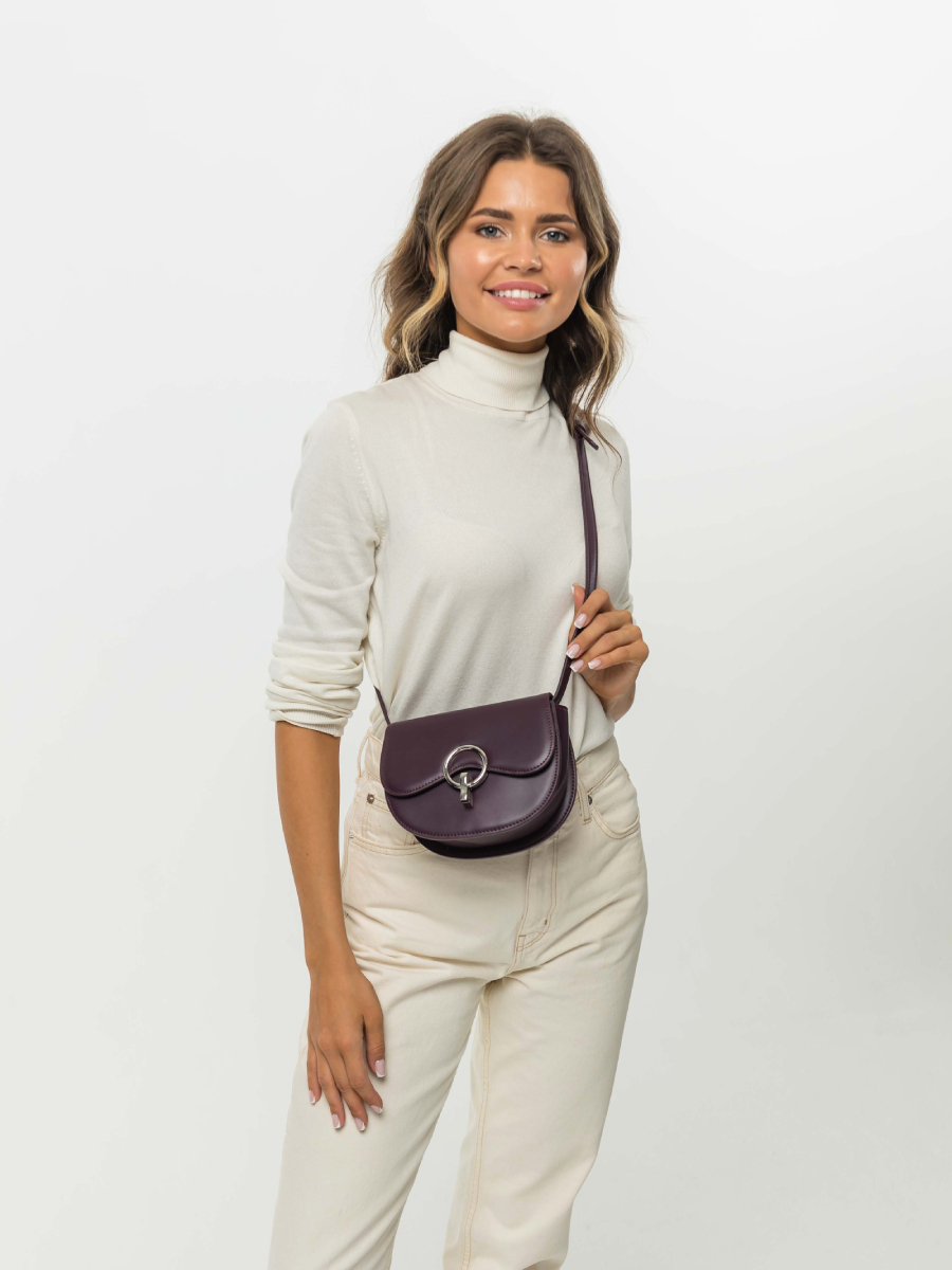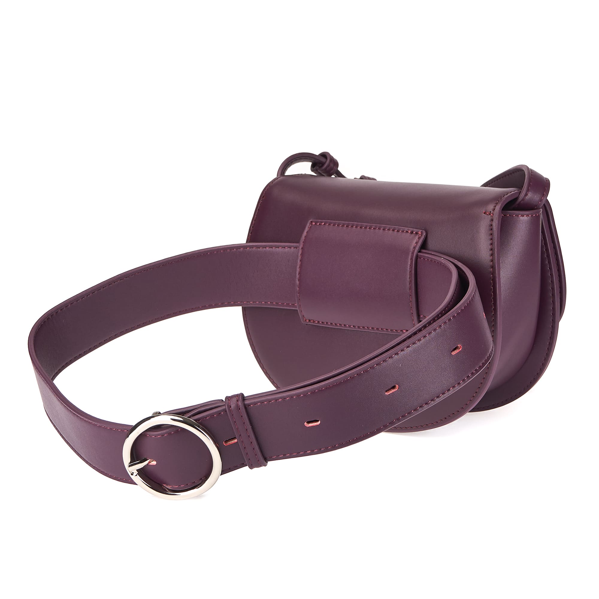 Формованная женская сумка из натуральной кожи в комплекте с ремнем на пояс, который можно носить как самоястоятельный аксессуар. Фурнитура серебристого цвета. В основном отделении под клапаном есть два дополнительных кармана. Съемный плечевой ремень регулируется по длине.