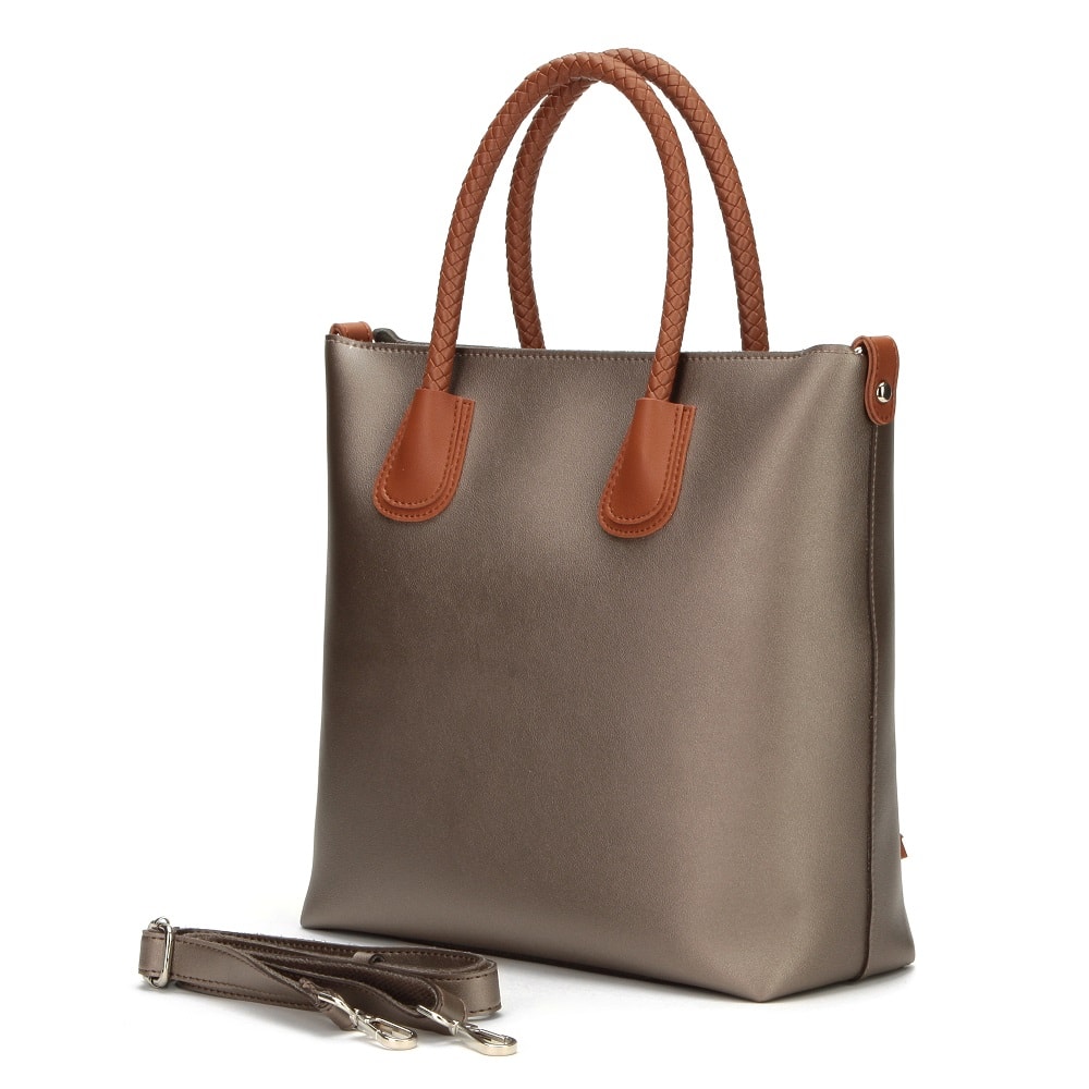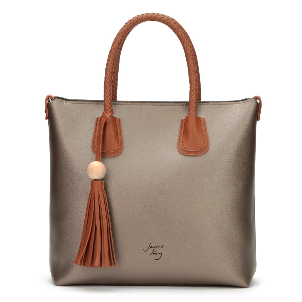 Большая удобная модель, изготовленная из гладкой эко кожи, отлично сочетающейся с фурнитурой цвета никель. Одно основное отделение на молнии, внутри которого выделены карманы: открытый и потайной. Декор в виде кисти прилагается.
