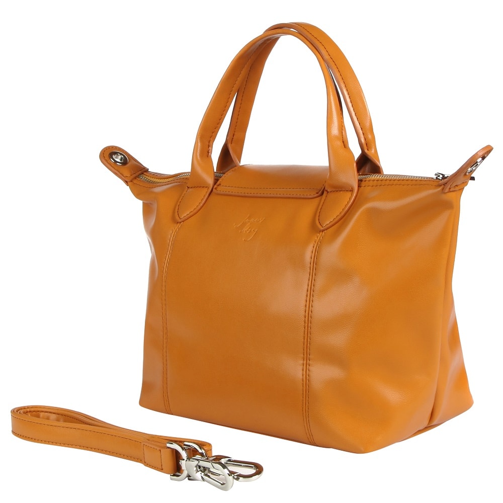 Средняя по размеру, удобная модель. Изготовлена из искусственной кожи, прекрасно сочетающейся с фурнитурой серебристого цвета. Одно основное отделение под клапаном на молнии, внутри которого выделены карманы - два открытых и один потайной. Длинный плечевой ремень прилагается.