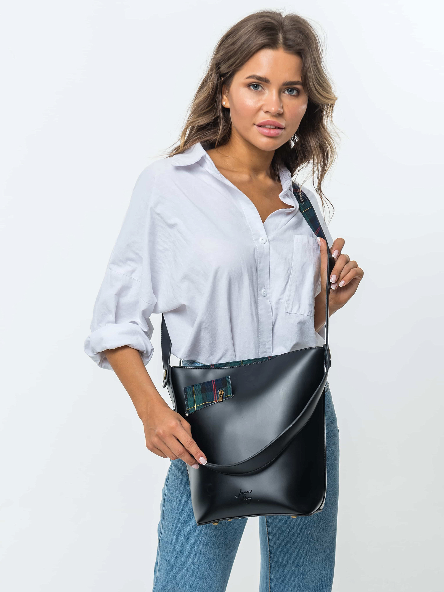 Большая удобная модель с двумя плечевыми ремнями (несъемными, но регулируемыми), изготовленная из гладкой эко кожи, отлично сочетающейся с фурнитурой золотистого цвета. Одно основное отделение на молнии, внутри которого выделены карманы: открытый, потайной и один-перегородка. Внутрення сторона ремня и вытаскивающийся кошелечек на молнии (на лицевой стороне) отделаны клетчатой тканью, которая будет гармонировать и перекликаться с вашим гардеробом.
