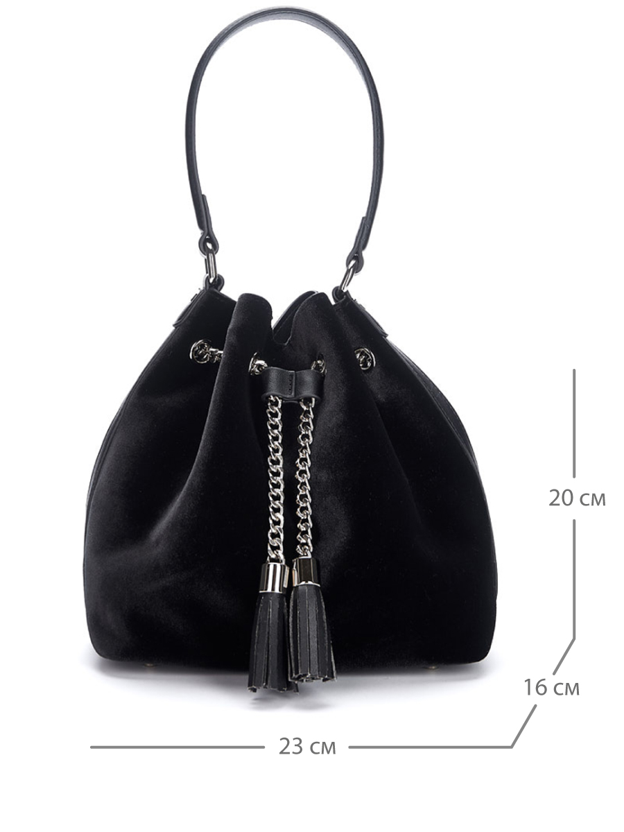 Очень интересная сумка-мешок, изготовлена с использованием комбинирования велюра и эко кожи. Декорирована массивной цепью-утяжкой серебристого цвета и кистями. Длинный плечевой ремень прилагается.