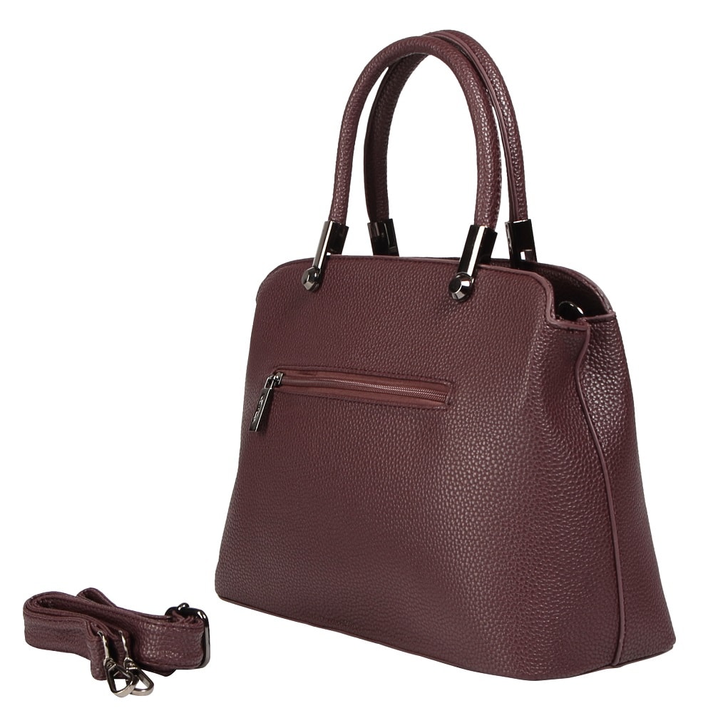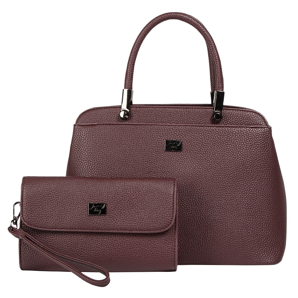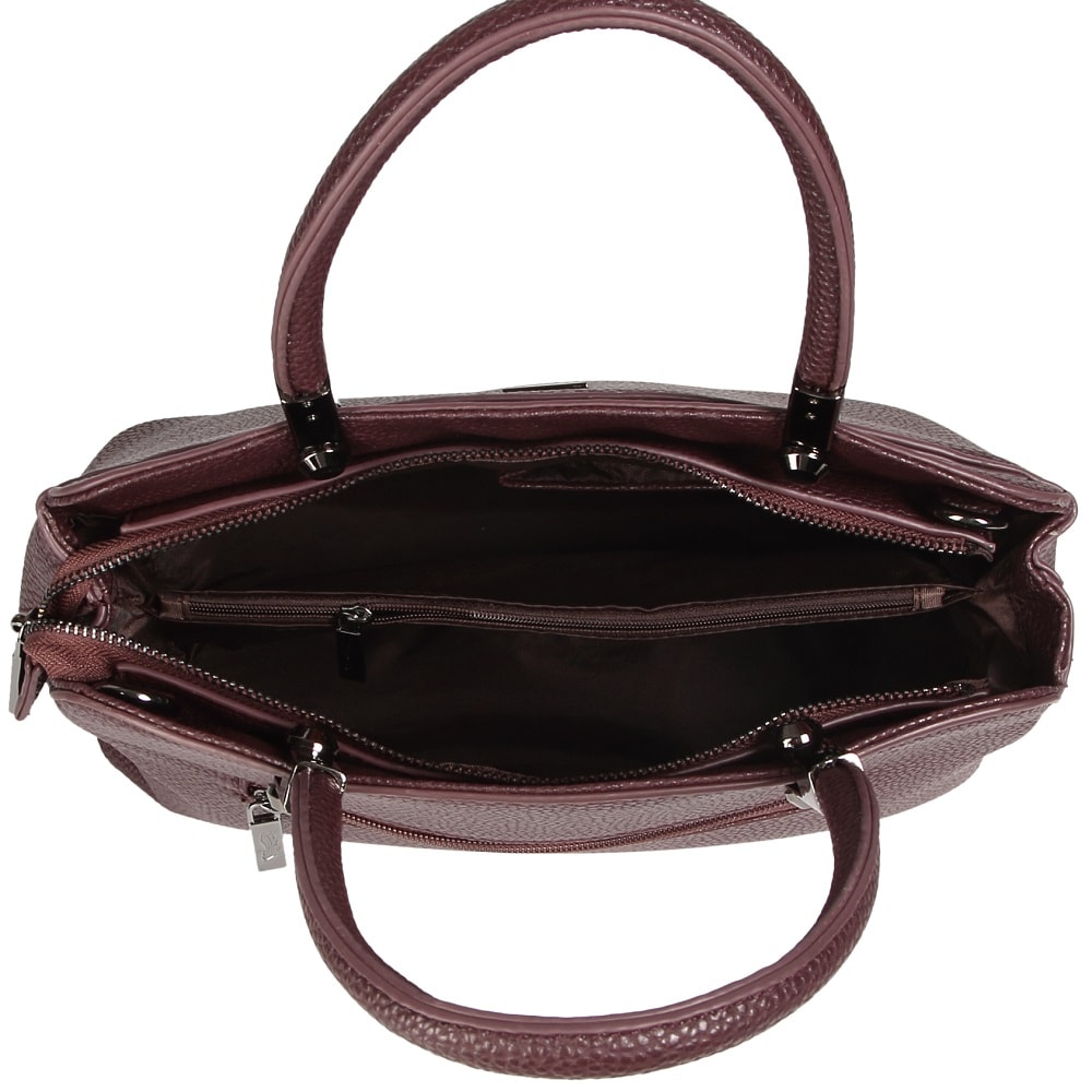 Средняя по размеру модель в комплекте с клатчем одного цвета, изготовленная из зернистой эко кожи, отлично сочетающейся с затемненной фурнитурой цвета никель. Одно основное отделение на молнии, внутри которого выделены карманы: один перегородка, один потайной и два открытых. На лицевой стороне один накладной открытый карман, на обратной стороне - дополнительная секция. Длинный плечевой ремень прилагается.
