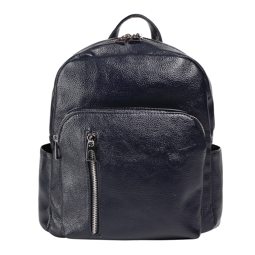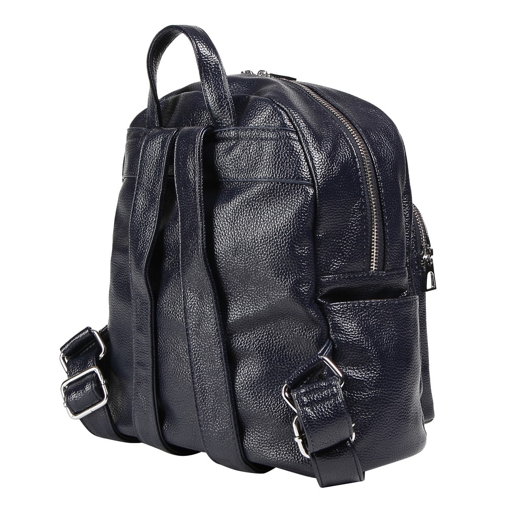 Стильный рюкзак из зернистой эко кожи с элегантной фурнитурой серебристого цвета. Основное отделение на молнии. Выделены карманы: внутри - два открытых и один потайной, на лицевой стороне - два, по бокам-два. Лямки рюкзака регулируются по длине.
