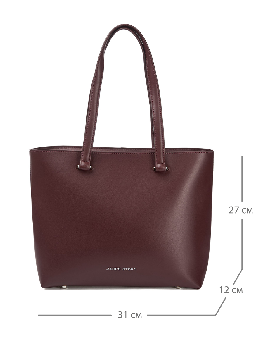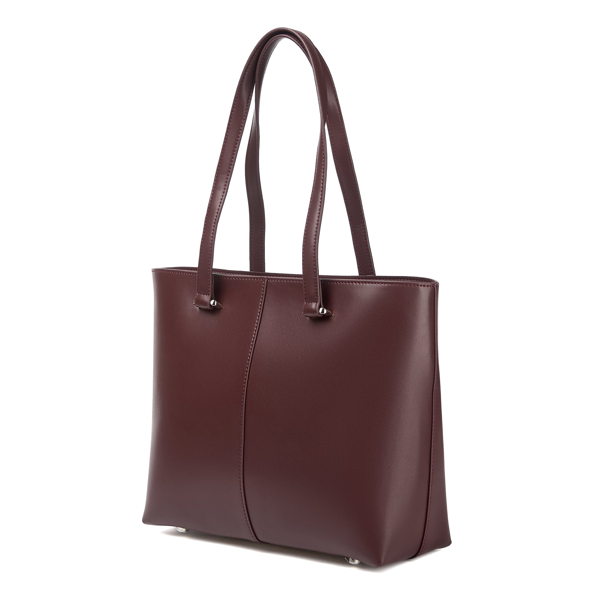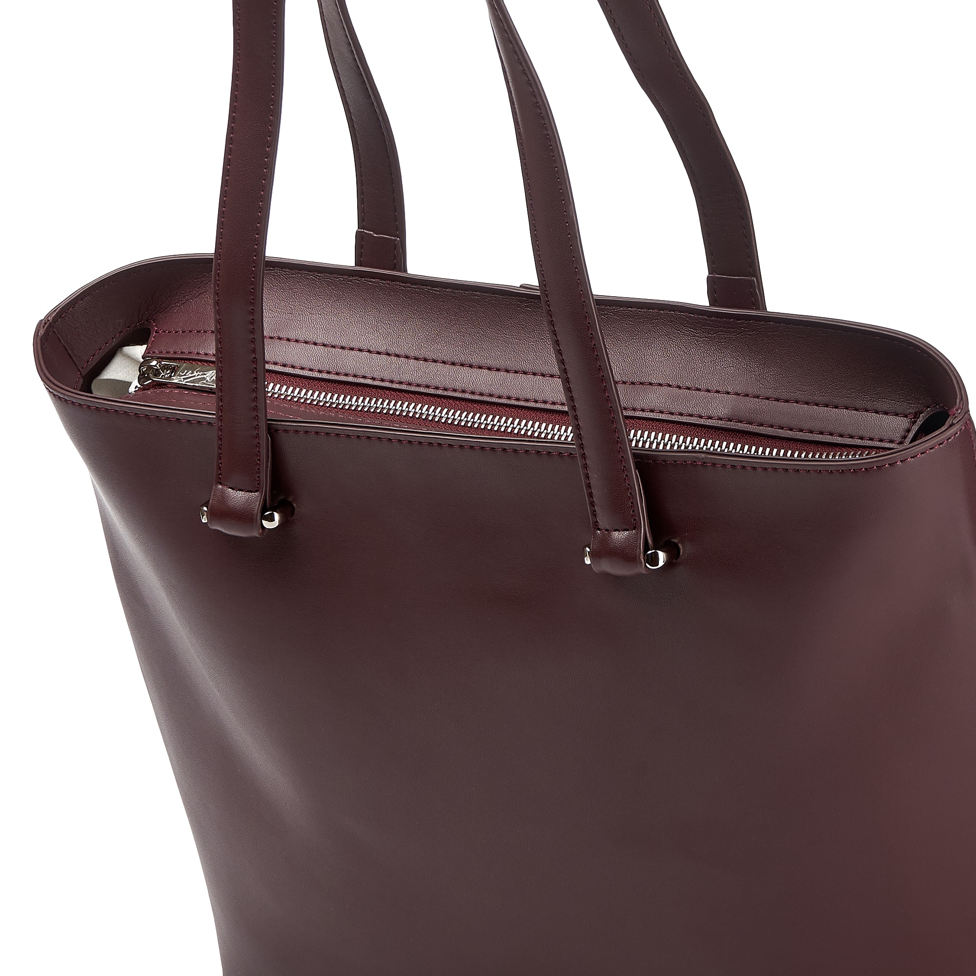 Вместительная сумка-тоут из натуральной гладкой кожи, прекрасно сочетающейся с фурнитурой серебристого цвета. Одно основное отделение на молнии, внутри которого выделены карманы: один на молнии и два открытых.