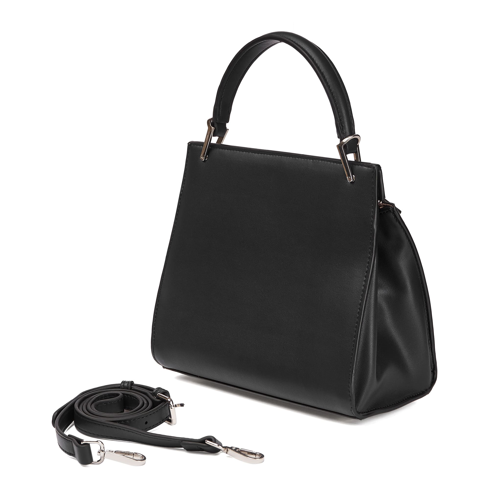 Красивая формованная сумка-сэтчел из гладкой эко кожи, прекрасно сочетающейся с фурнитурой серебристого цвета. Одно основное отделение на молнии, внутри которого расположен один карман на молнии. Съемный плечевойй ремень прилагается.