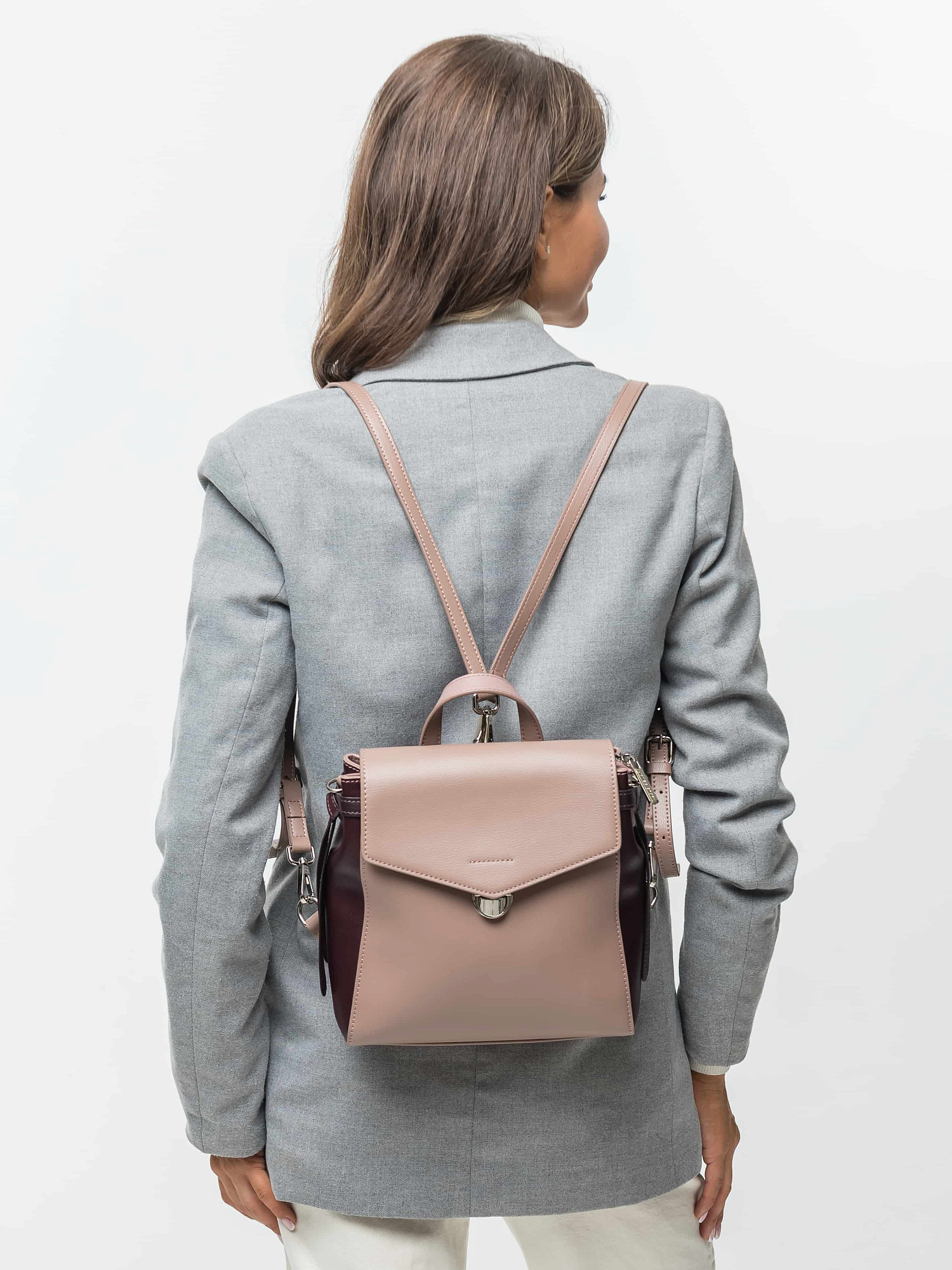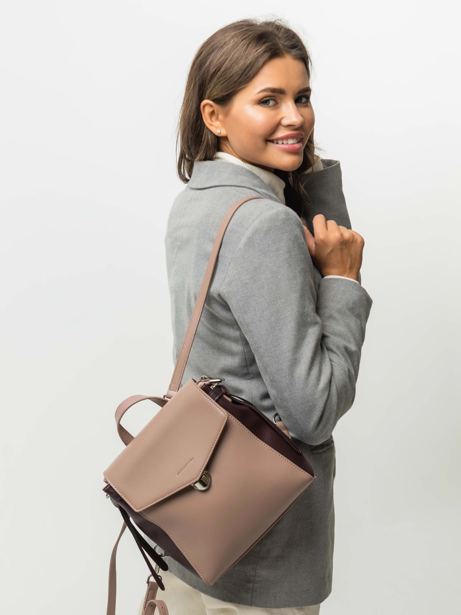 Стильный рюкзак, выполненный из натуральной гладкой кожи, прекрасно сочетающейся с фурнитурой серебристого цвета. Основное отделение под клапаном - на молнии. Внутри расположены карманы: открытый и потайной. На обратной стороне - дополнительное отделение. Лямки рюкзака регулируются по длине.