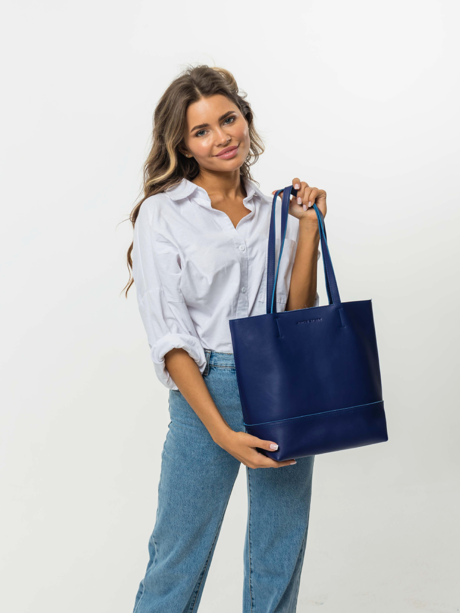 Женская сумка-шоппер синяя WW-6163-60 натуральная кожа