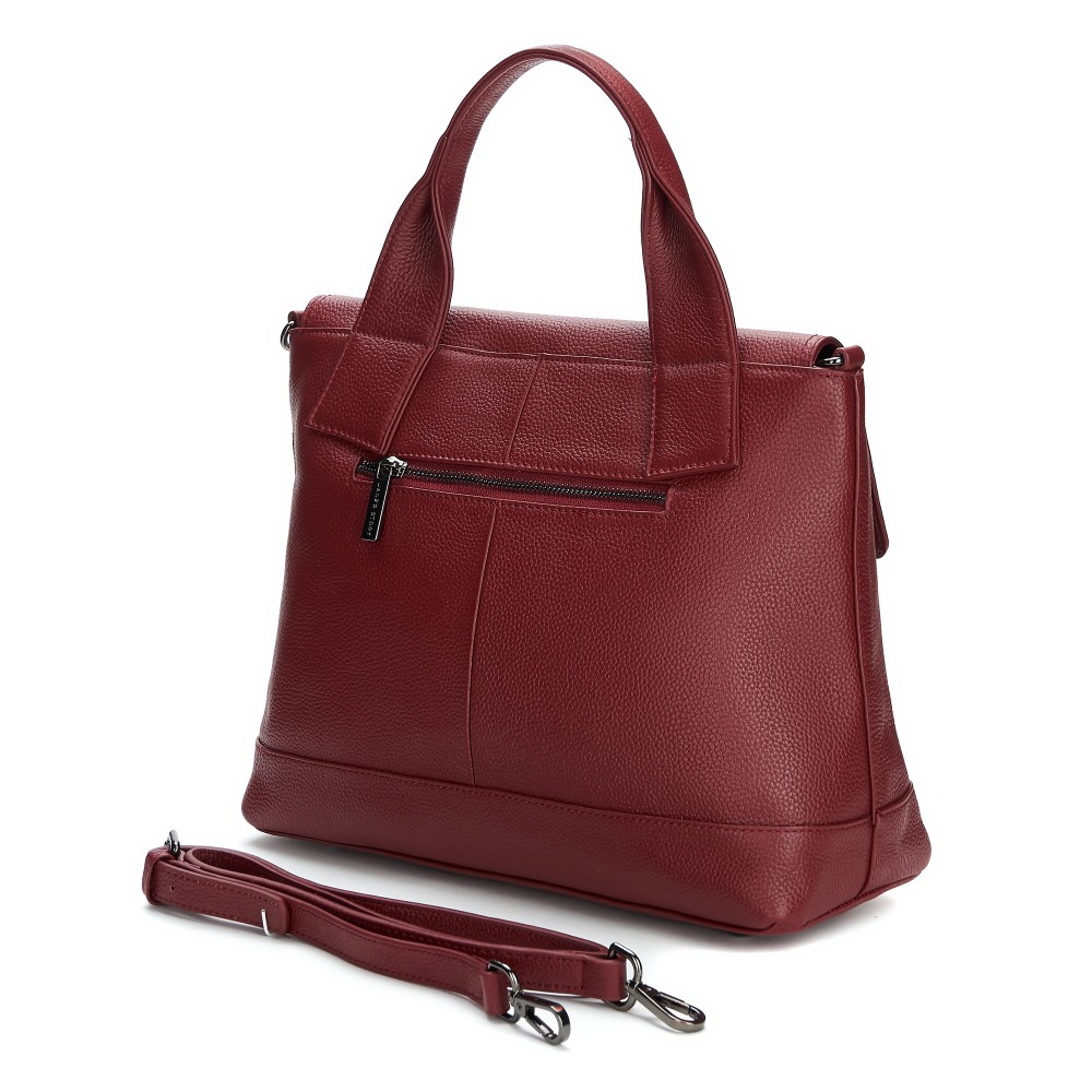 Классическая модель из зернистой натуральной кожи, отлично сочетающейся с затемненной фурнитурой цвета никель. Одно основное отделение под клапаном-на магнитах , внутри которого выделены карманы: открытый, потайной и один перегородка. На обратной стороне дополнительная секция-на молнии. Длинный плечевой ремень прилагается.