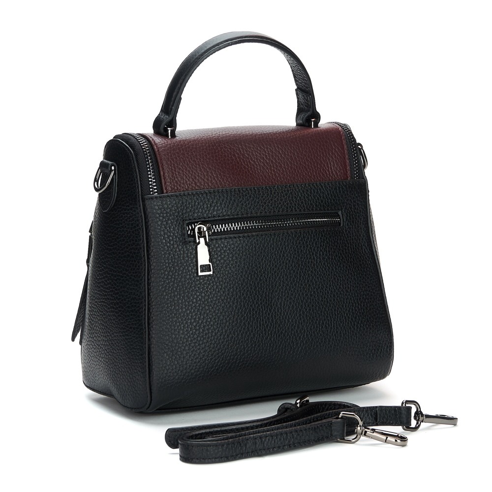 Стильная модель, изготовленная из натуральной зернистой кожи, отлично сочетающейся с затемненной фурнитурой цвета никель. Одно основное отделение под клапаном на молнии, внутри которого выделены карманы: перегородка и один потайной. На обратной стороне расположена дополнительная секция-на молнии. Длинный плечевой ремень прилагается.