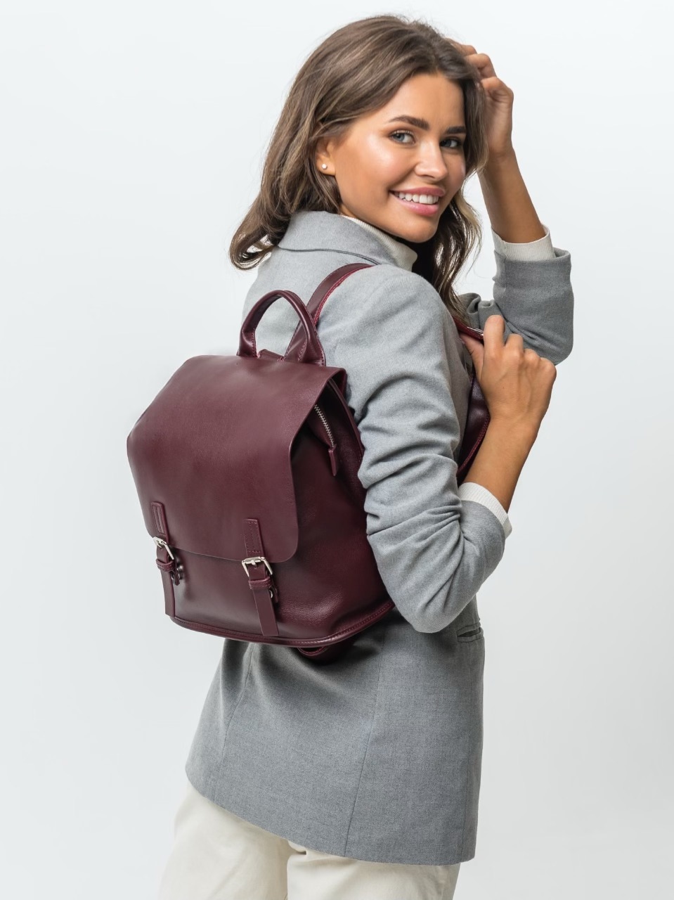 Стильный рюкзак выполнен из натуральной гладкой кожи, прекрасно сочетающейся с фурнитурой серебристого цвета. Основное отделение под клапаном на двух магнитах- на молнии. Внутри карман-перегородка, два открытых и потайной. На обратной стороне и сбоку - отделения на молнии. Лямки рюкзака регулируются по длине.