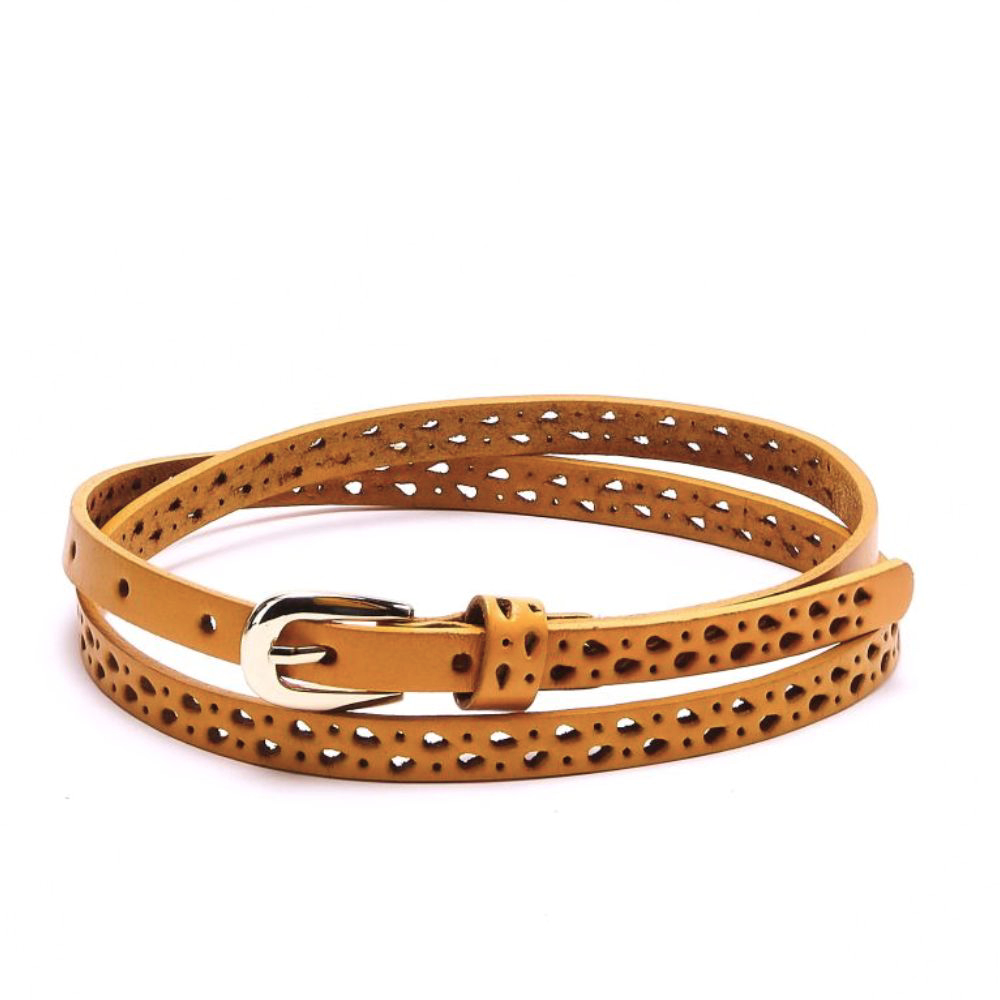 Женский ремень из натуральной кожи от бельгийского бренда Jane's Story. Ремень с металлической пряжкой станет оригинальным акцентом вашего образа. Размер ремня (с пряжкой) - 106*1,3 см.