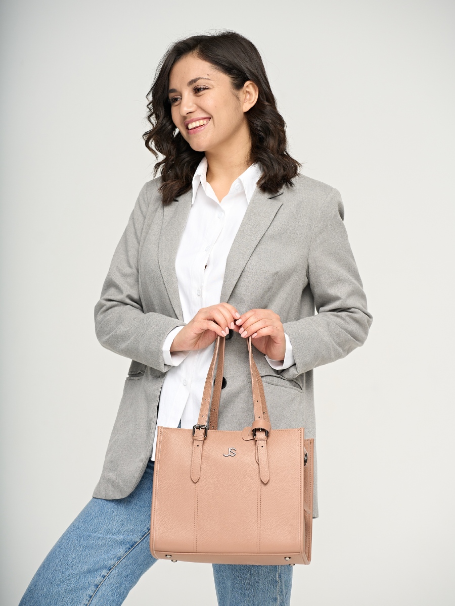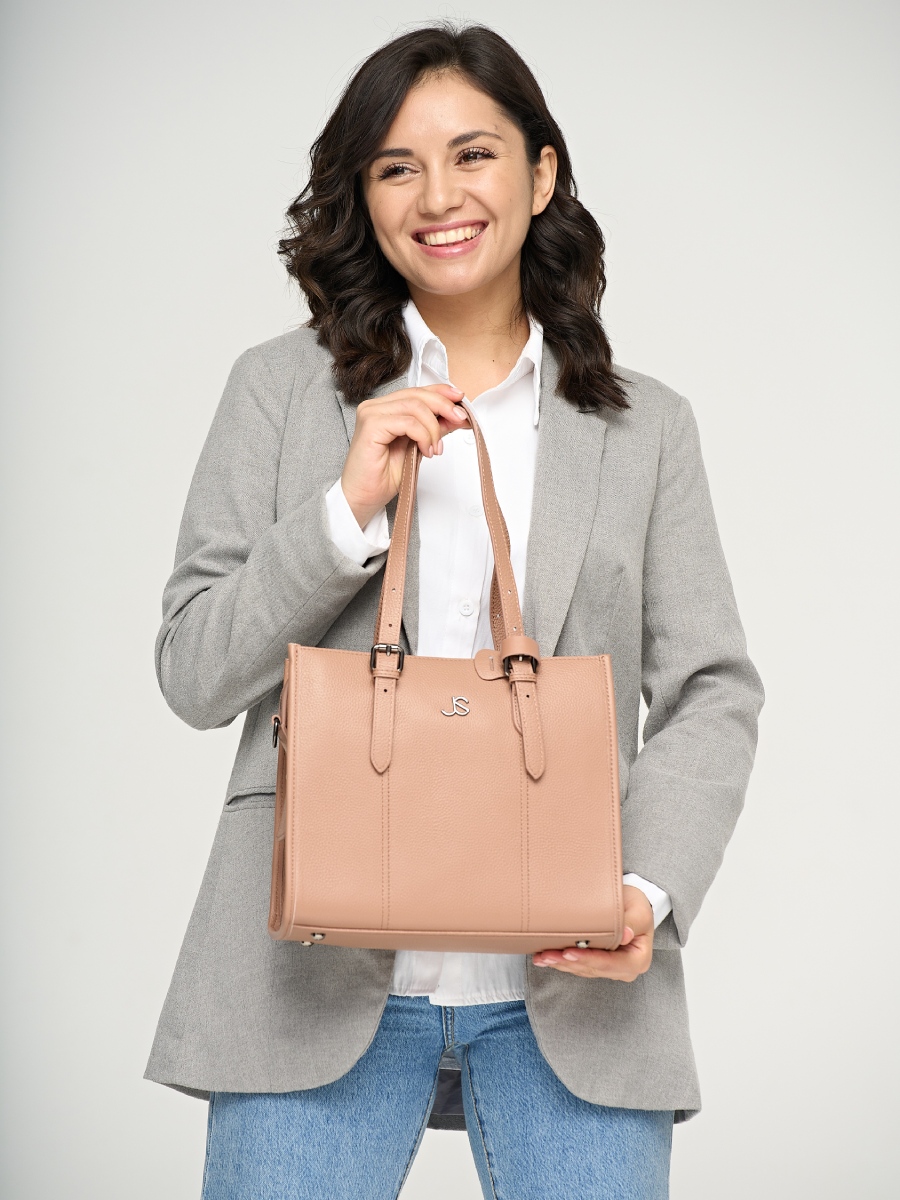 Женская сумка-тоут бежевая YFN-8620-85 натуральная кожа