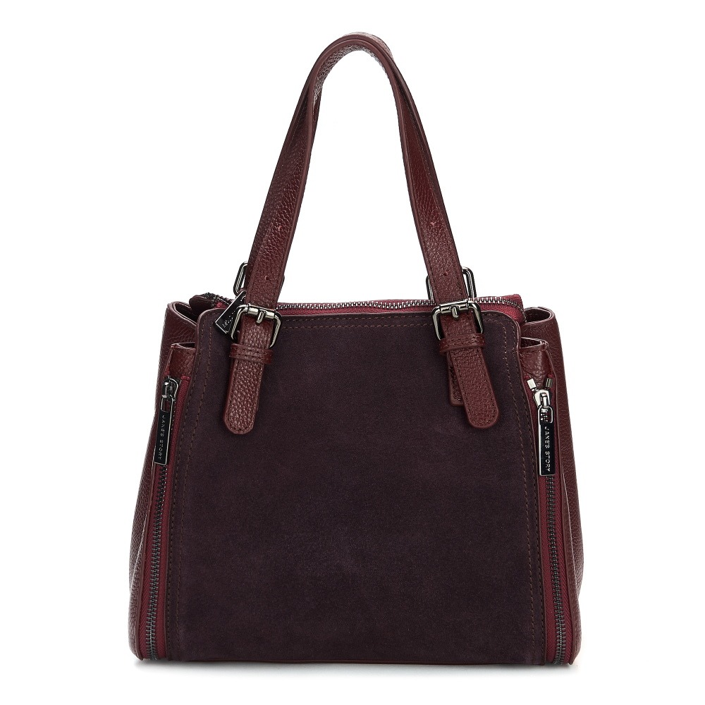 Элегантная модель из натуральной зернистой кожи и замши, прекрасно сочетающется с фурнитурой серебристого цвета. Одно основное отделение на молнии, внутри которого выделены карманы: два открытых, один потайной. Длинный плечевой ремень прилагается.
